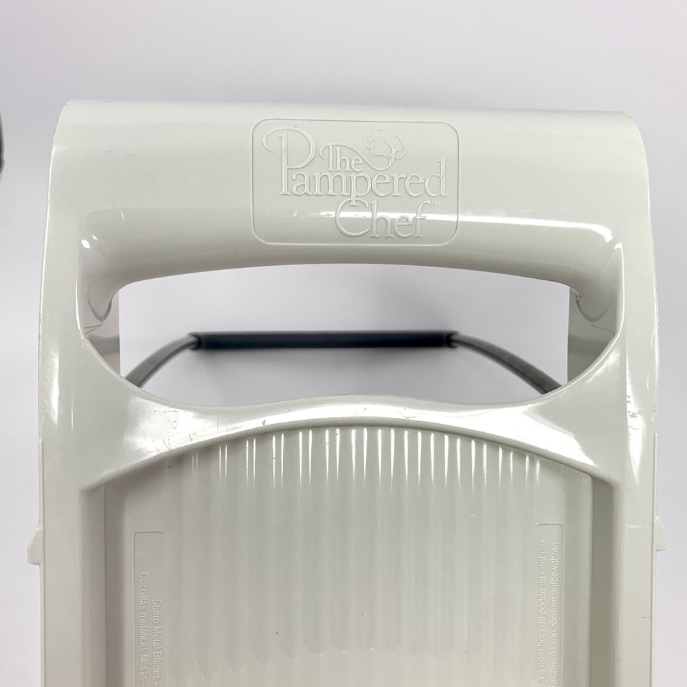Pampered Chef Ultimate Mandoline 1087 Slicer & Grater 4 Blades Case Retired Used condition with all 4 blades. Some minor cosmetic scratches/wear. Please see photos. Please choose economy or priority shipping in the options. Feel free to contact me with any questions, I'm happy to help.