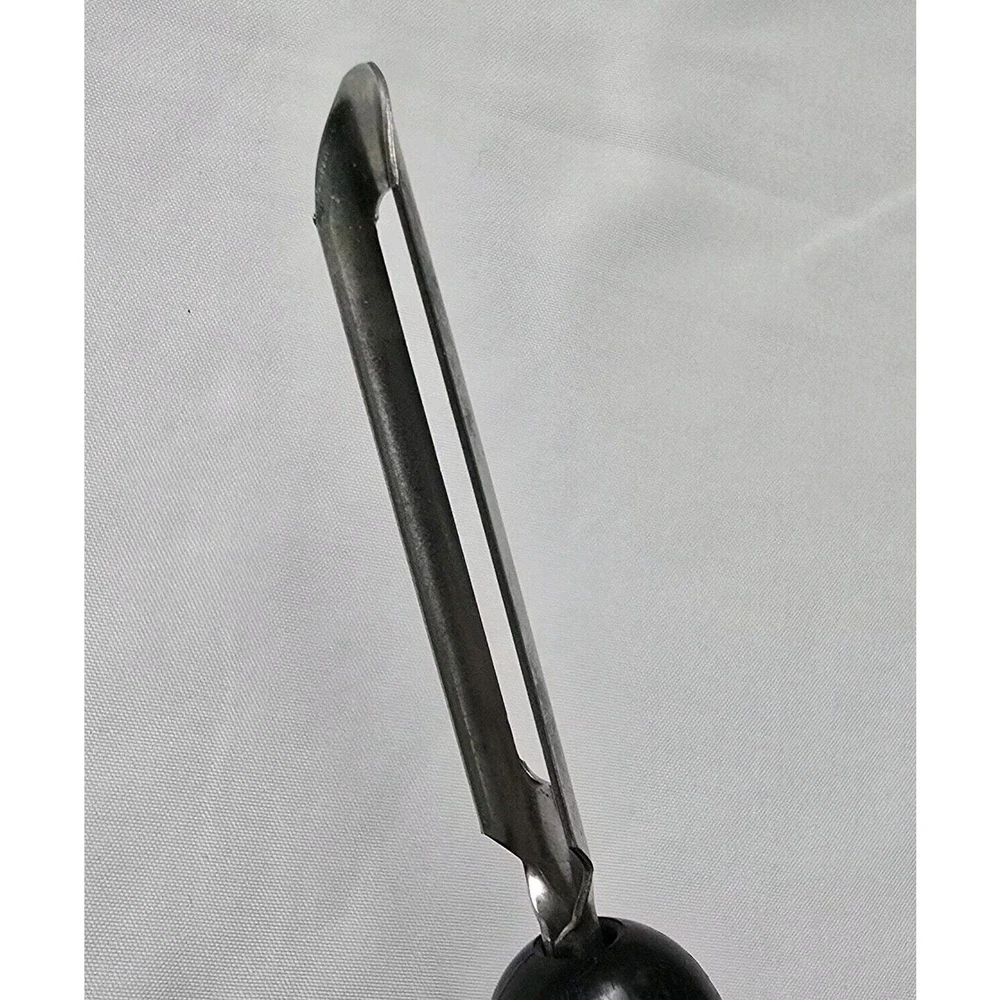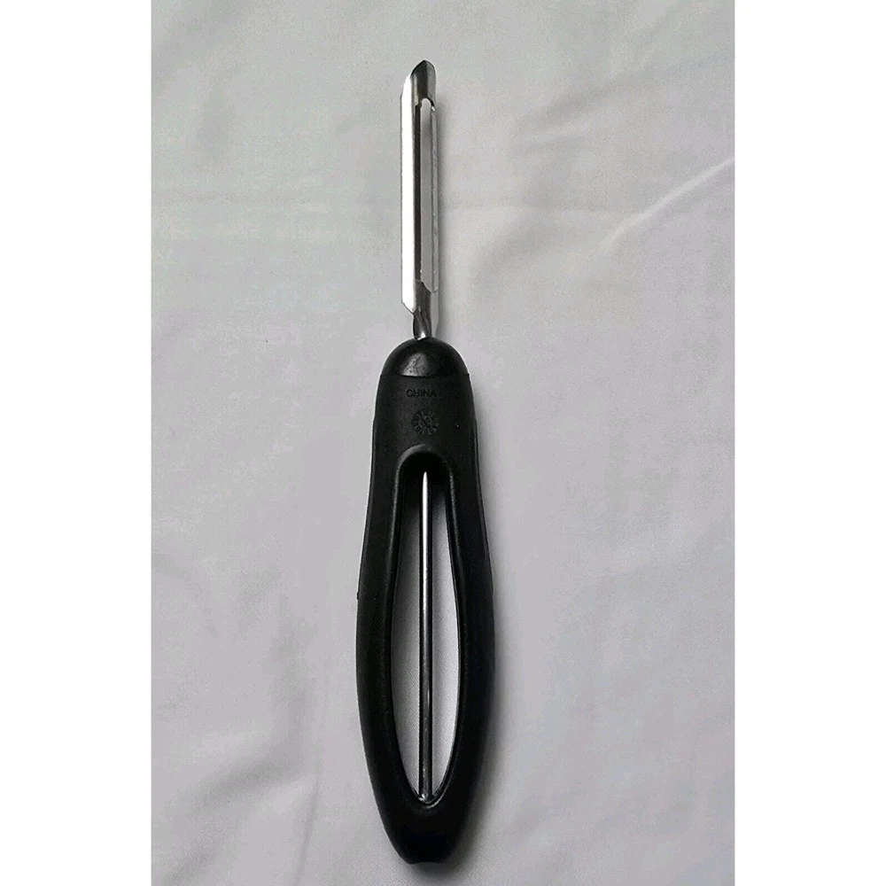 The Pampered Chef Vegetable Potato Peeler #1071 features a swivel blade with a comfort grip handle, making it easy and comfortable to use. Made of stainless steel and dishwasher safe, this vegetable peeler is perfect for peeling vegetables like potatoes. The set includes both a vegetable peeler and a potato peeler, providing versatility in the kitchen. This black peeler is a practical and convenient tool for any home cook looking to easily prep their vegetables.