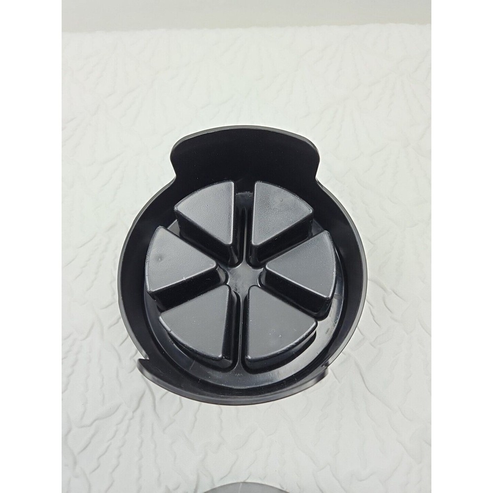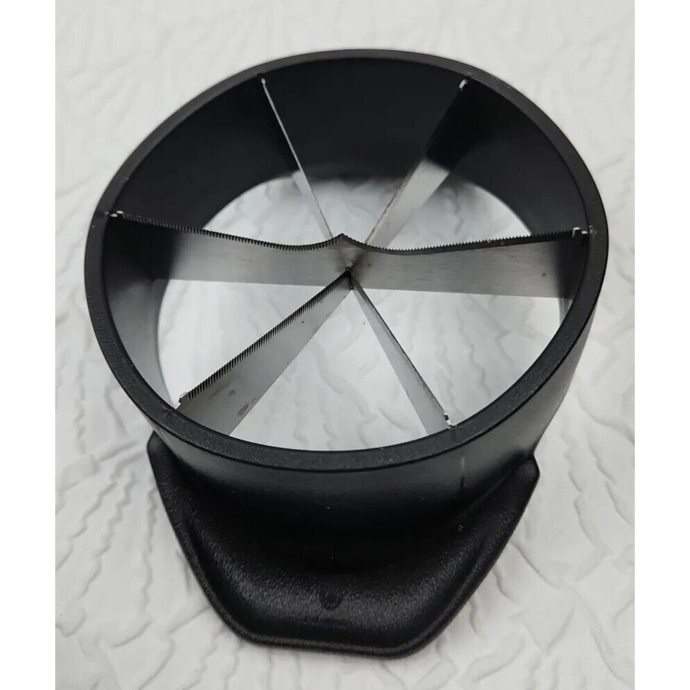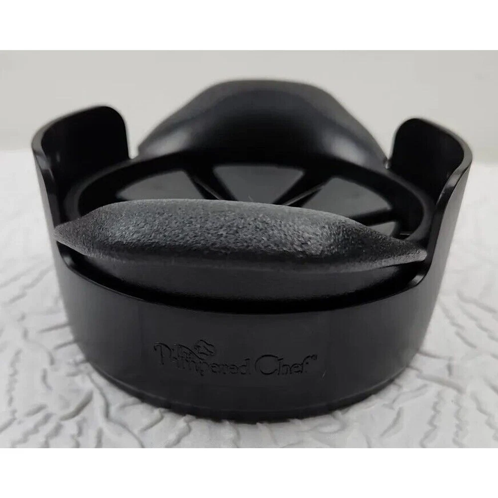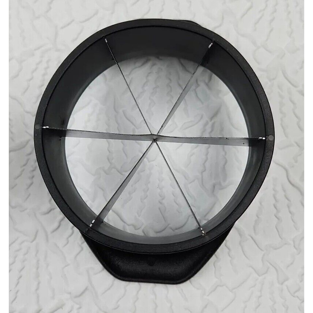 Introducing the Pampered Chef Veggie Wedger #2417, a versatile tool for slicing and dicing your favorite fruits and vegetables. This two-piece set includes a sturdy plastic and metal base that securely holds your produce in place, and a sharp blade that effortlessly cuts through even the toughest of skins. Perfect for slicing vegetables like carrots and cucumbers, or fruits like apples and pears, this tool is a must-have for any kitchen. The compact design makes it easy to store, and the black color adds a stylish touch to your countertop. Whether you're a professional chef or a home cook, the Pampered Chef Veggie Wedger #2417 is the perfect addition to your kitchen arsenal.