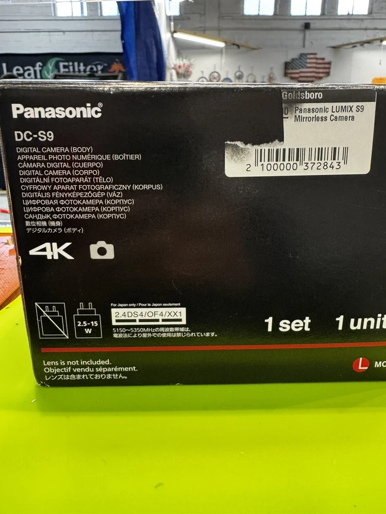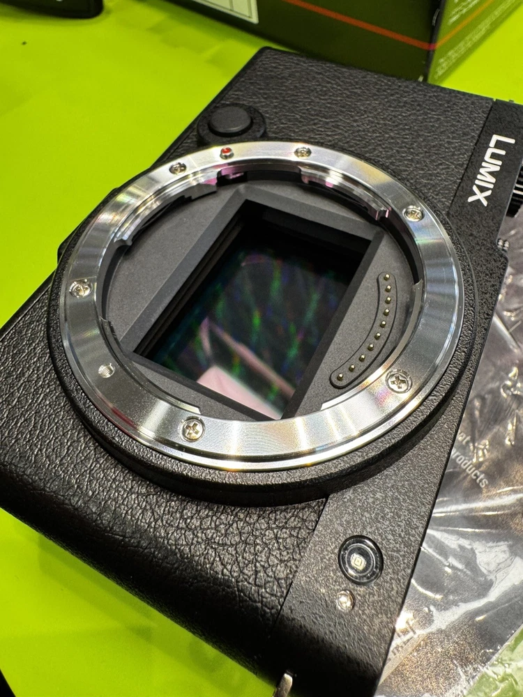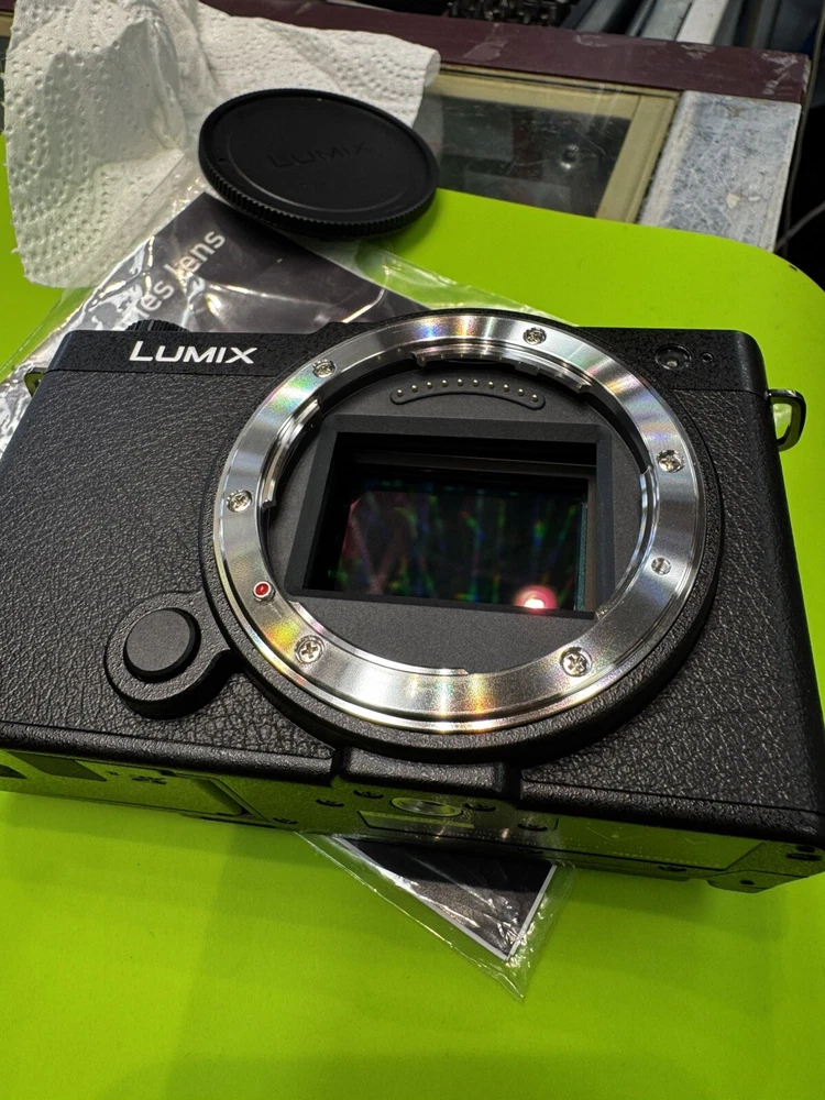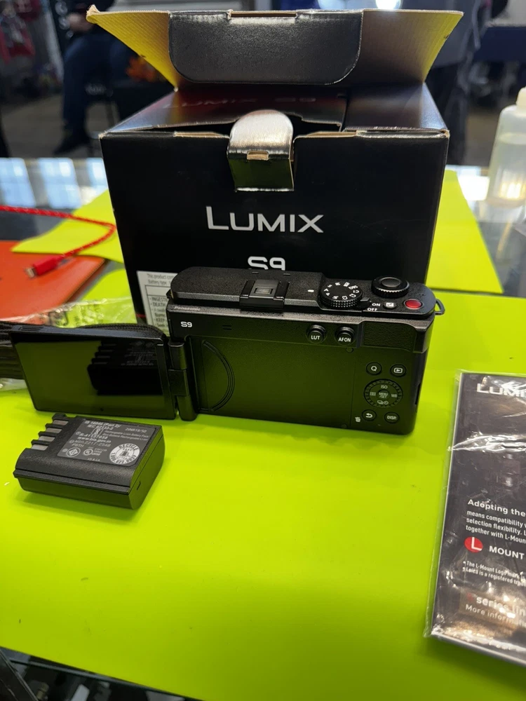 Open-Box Condition Details • Shutter Count: Currently unknown; the camera has not been used with a lens, ensuring minimal wear. • Lens Mount Condition: Inspected and found to be pristine with no scratches or signs of wear. • Usage: Never used for taking pictures, guaranteeing that the shutter count is likely very low. • Overall Condition: Open-box but appears unused, making it an excellent value for its near-new state. Panasonic Lumix DC-S9 1. 24.2MP Full-Frame CMOS Sensor • Ensures stunning image resolution with vibrant colors and fine details. The sensor delivers impressive dynamic range, even in challenging lighting conditions. 2. Phase Hybrid Autofocus System • Combines phase-detection and contrast-detection autofocus for fast, accurate, and reliable focusing, even in low-light environments. 3. 6K Video Recording Capability • Supports 6K30p 4:2:0 10-bit internal video recording, ensuring professional-grade video quality with excellent detail and dynamic range. Ideal for content creators and filmmakers. 4. 5-Axis In-Body Image Stabilization (IBIS) • Effectively compensates for camera shake, allowing sharp handheld shooting and smoother videos, especially in low-light or dynamic shooting scenarios. 5. Fully Articulating Touchscreen • Features a 1.84M-dot LCD display that swivels and tilts, perfect for high-angle, low-angle, or selfie shots. 6. Compact and Lightweight Design • Weighing approximately 1.2 pounds (body only), the camera is easy to carry and maneuver, making it great for travel and on-the-go photography. 7. L-Mount Lens Compatibility • Compatible with a wide range of L-Mount lenses from Panasonic, Leica, and Sigma, offering flexibility for various shooting styles. 8. Durable Build Quality • The body is weather-sealed, providing protection against dust, splashes, and harsh environments.