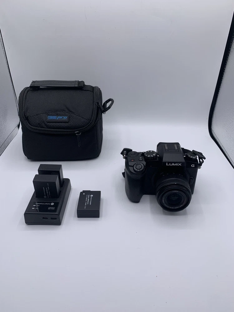 Capture stunning photos with this Panasonic Lumix DMC-G7 mirrorless digital camera in black. The camera boasts a maximum resolution of 16.0 MP and a 10x optical zoom, which allows you to take high-quality photos from a distance. The camera also features 4K video recording, audio recording, and AF lock, making it perfect for both photography and videography enthusiasts. In addition, the camera has a 3-inch screen size, f/5.6 maximum aperture, and a digital zoom of 4x. It comes with a 14-42mm lens and has a lithium-ion battery type. The Panasonic Lumix DMC-G7 is a perfect choice for anyone who wants to capture stunning photos and videos with ease.