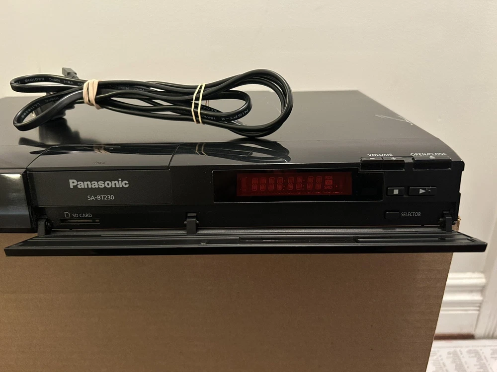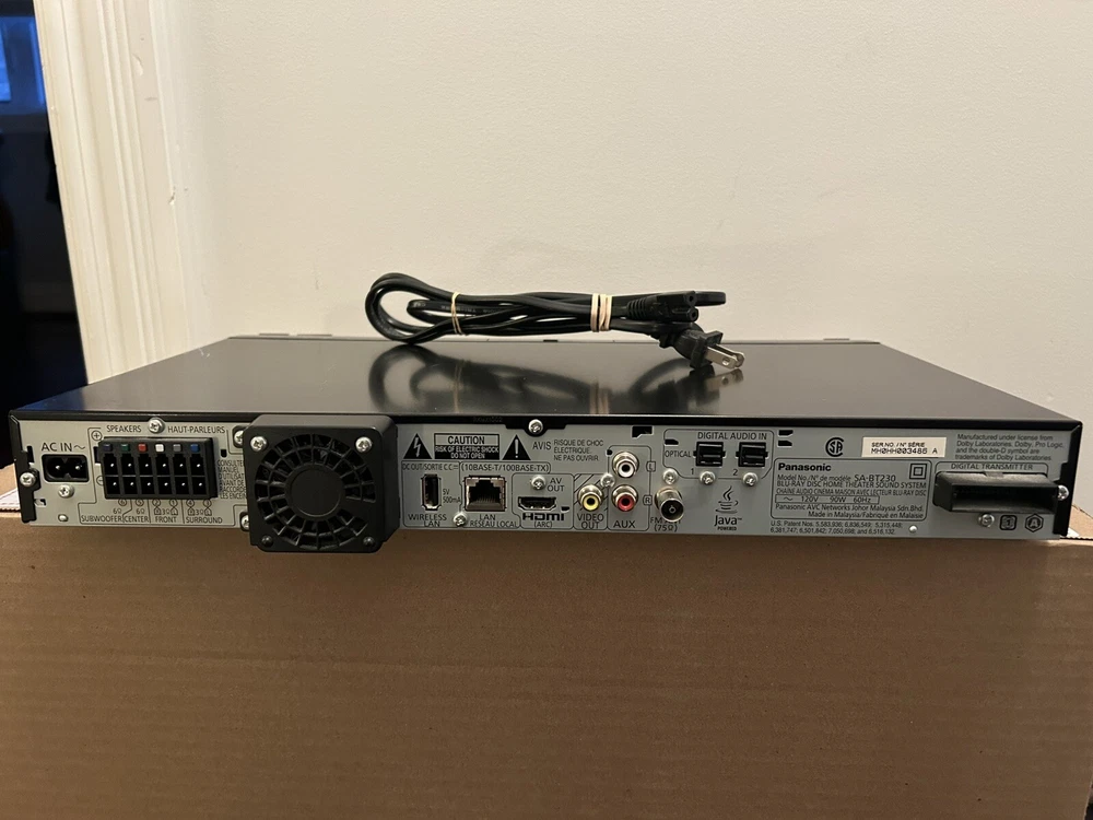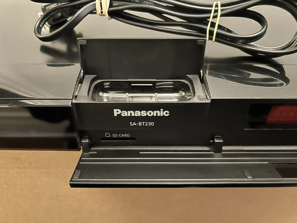 Experience high-definition entertainment with the Panasonic SA-BT230 Blu-ray Player, a versatile home theater system that supports a range of media formats including Blu-ray, DVD, and CD. Its sleek design and user-friendly interface make it a perfect addition to any living room, ensuring you get to enjoy your favorite movies and music with ease. The player is region-2 coded, which means it's ideal for those who have a collection of DVDs from Europe and other Region 2 areas. Additionally, it can play DVD-R recordable media, allowing you to create and watch your own custom DVDs. Whether you're a movie buff or a music enthusiast, this Panasonic Blu-ray player will enhance your audio-visual experience. Guarenteed to be working Power cord only - NO AV cables