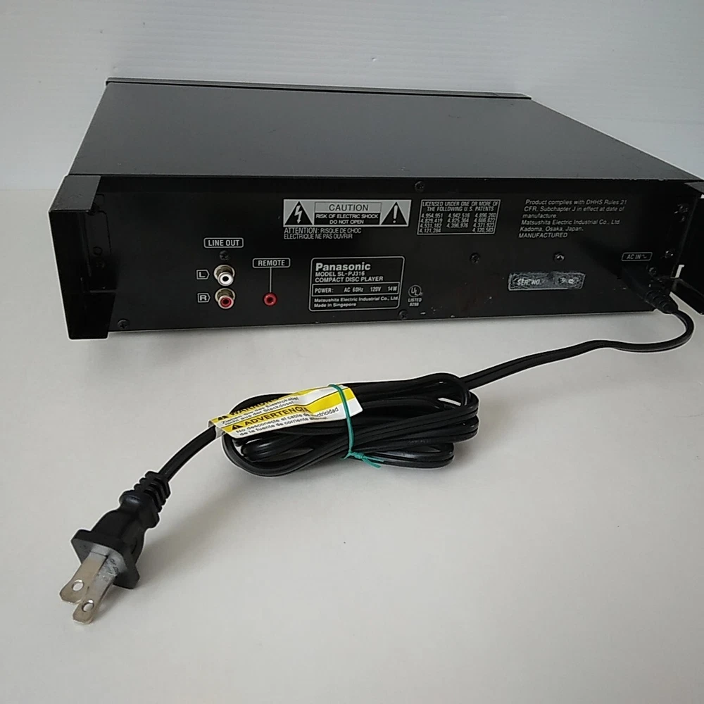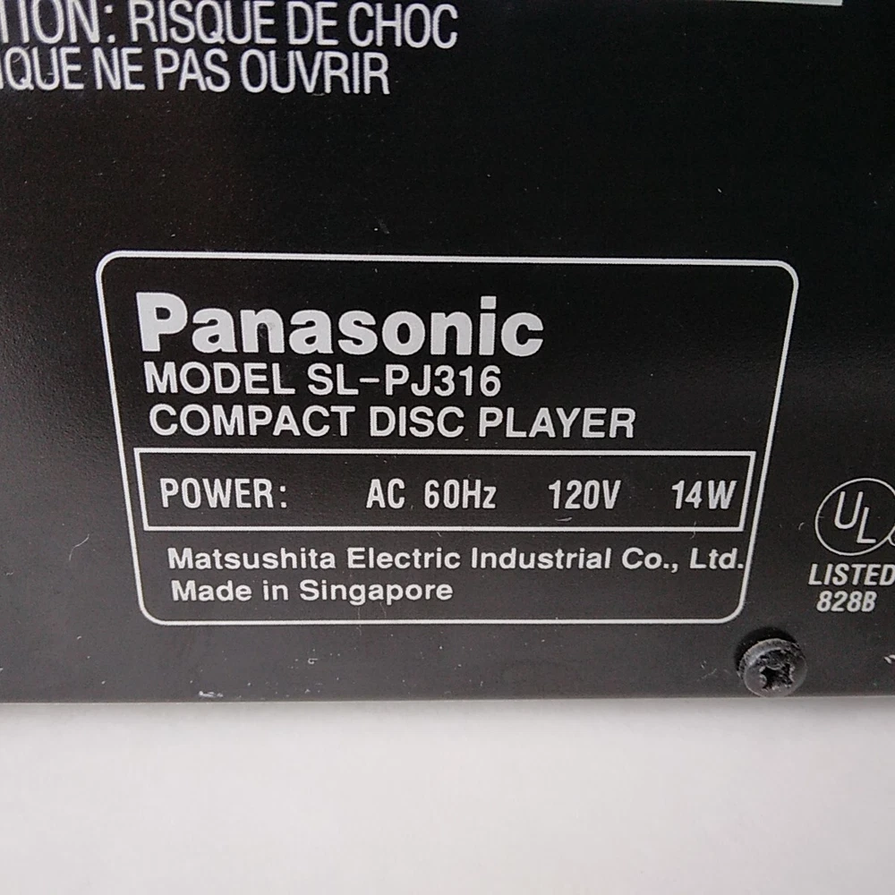 Panasonic SL-PJ316 Shelf CD Player. This CD Changer has been tested with speakers on all functions and works well. Picture 3 shows testing with a small active speaker. Pictures 4 to 9 show CD testing. Both left and right channel work well. This SL-PJ316 is in acceptable cosmetic condition all around. Some scratches and edge wear. See pictures for a detailed look. Item will ship well protected. Thanks for the interest in this CD Player.