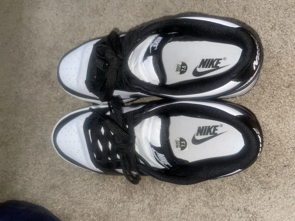 Introducing the Panda Dunks, a stylish and comfortable sneaker perfect for casual wear. Made with high-quality leather and designed with a sleek black color, these shoes are sure to match any outfit. Whether you're a fan of Nike or just looking for a trendy addition to your shoe collection, the Panda Dunks are a great choice. With a US shoe size of 7.5, these sneakers are perfect for men who value both style and comfort. The casual design makes them ideal for everyday wear, while the unique features, such as the brand and style, add a touch of personality to any outfit. Don't miss out on the chance to own a pair of Panda Dunks - step up your shoe game today!
