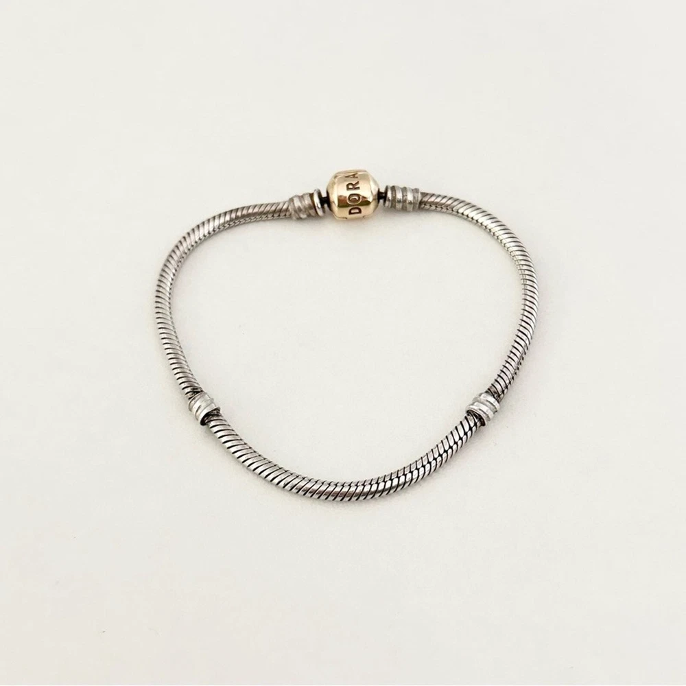 Authentic Genuine Pandora Two Tone Moments Snake Chain Bracelet •Set in sterling silver with a solid 14k yellow gold clasp •Size: 7.5" •Stamped 585 ALE •Excellent condition •Perfect to add to your Pandora bracelet collection or to gift to a friend, mom, girlfriend, daughter, wife, etc. •Please check out my other Pandora charms for sale, bundle and save on shipping! •Fast shipping! I ship same or next business day!
