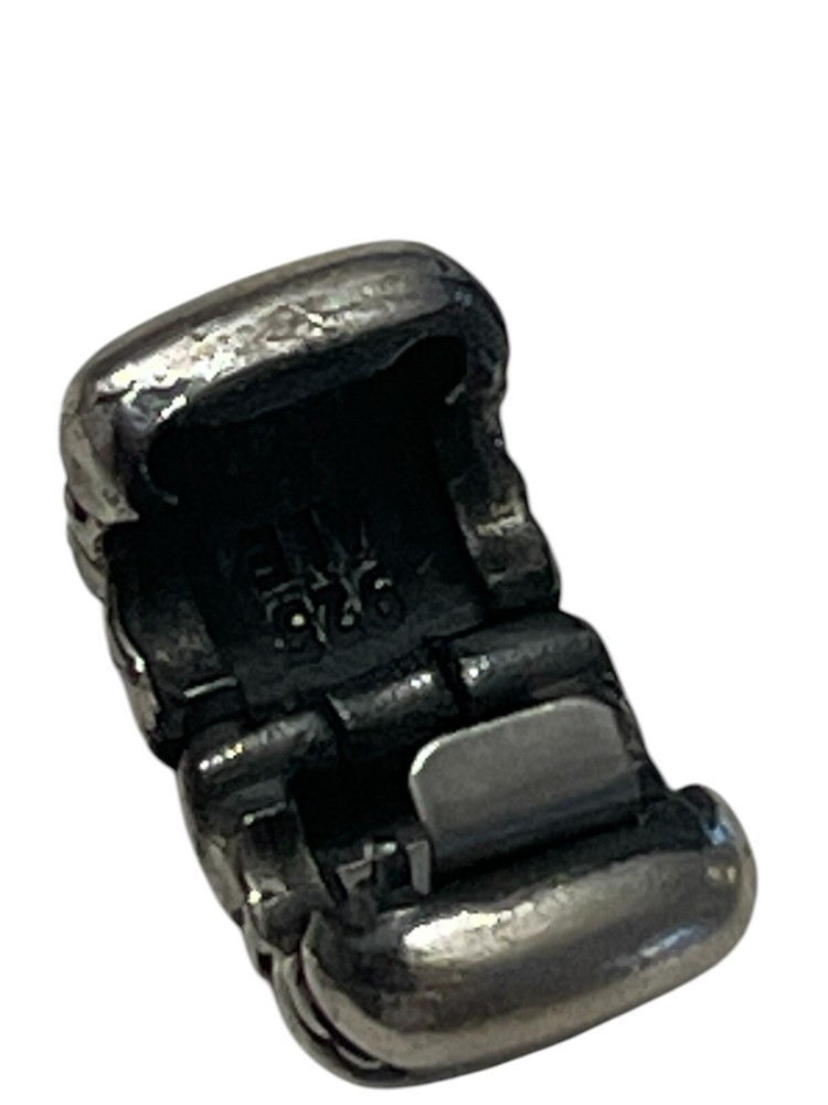 Add some flair to your jewelry collection with these beautiful Pandora Sterling Silver 925 Ale Charm Clips. These clips are perfect for adding a touch of elegance to any bracelet or necklace. The engraved swirls and clip design make them a unique addition to your jewelry box. Made of high-quality sterling silver, these clips are authentic and durable. The silver color and vintage style make them a perfect gift for someone special or to treat yourself. Get creative and mix and match these clips with your favorite bracelets and necklaces for a stylish and personalized look.