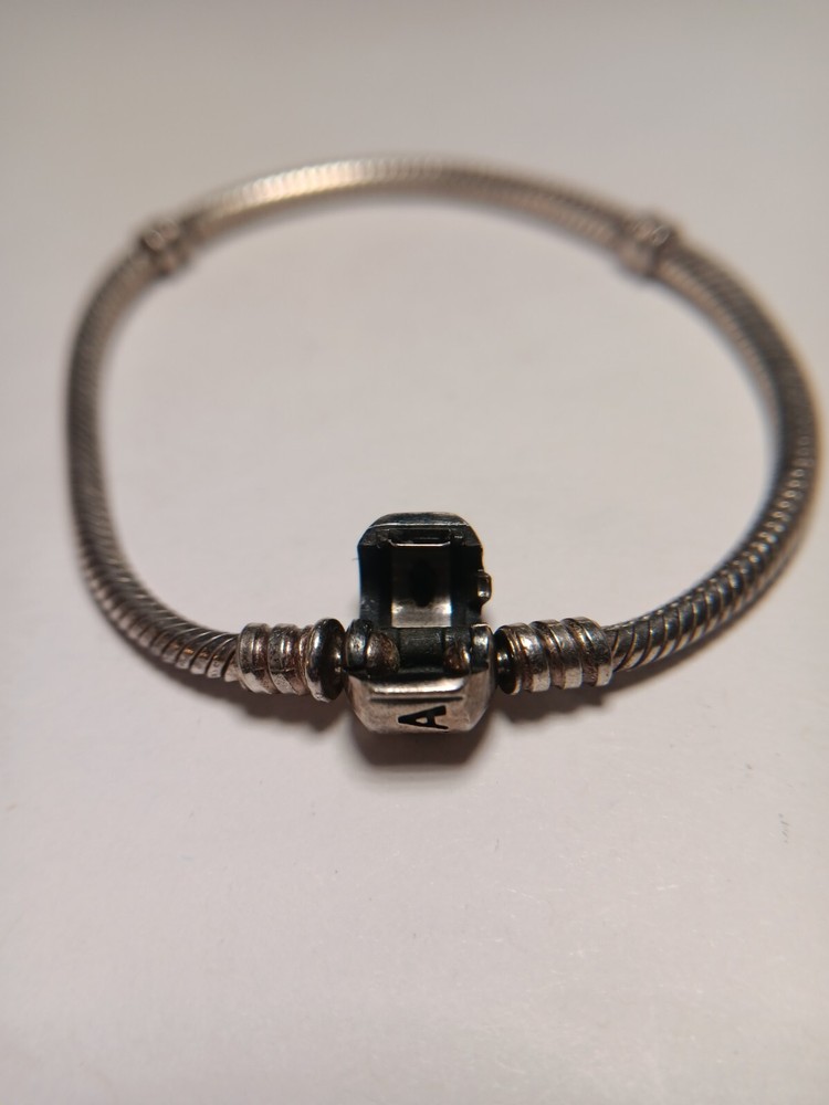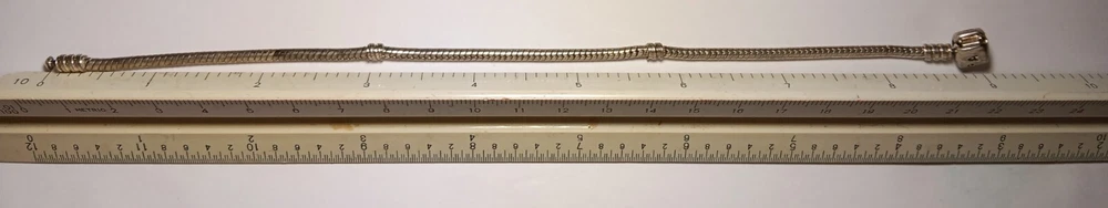 Crafted in sleek sterling silver, this snake chain bracelet features Pandora's iconic barrel clasp for a secure fit while the innovative threading system makes it easy to screw charms onto your bracelet.