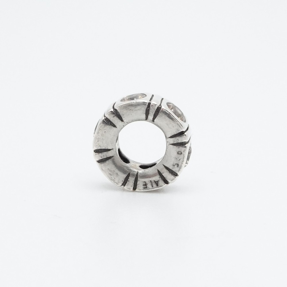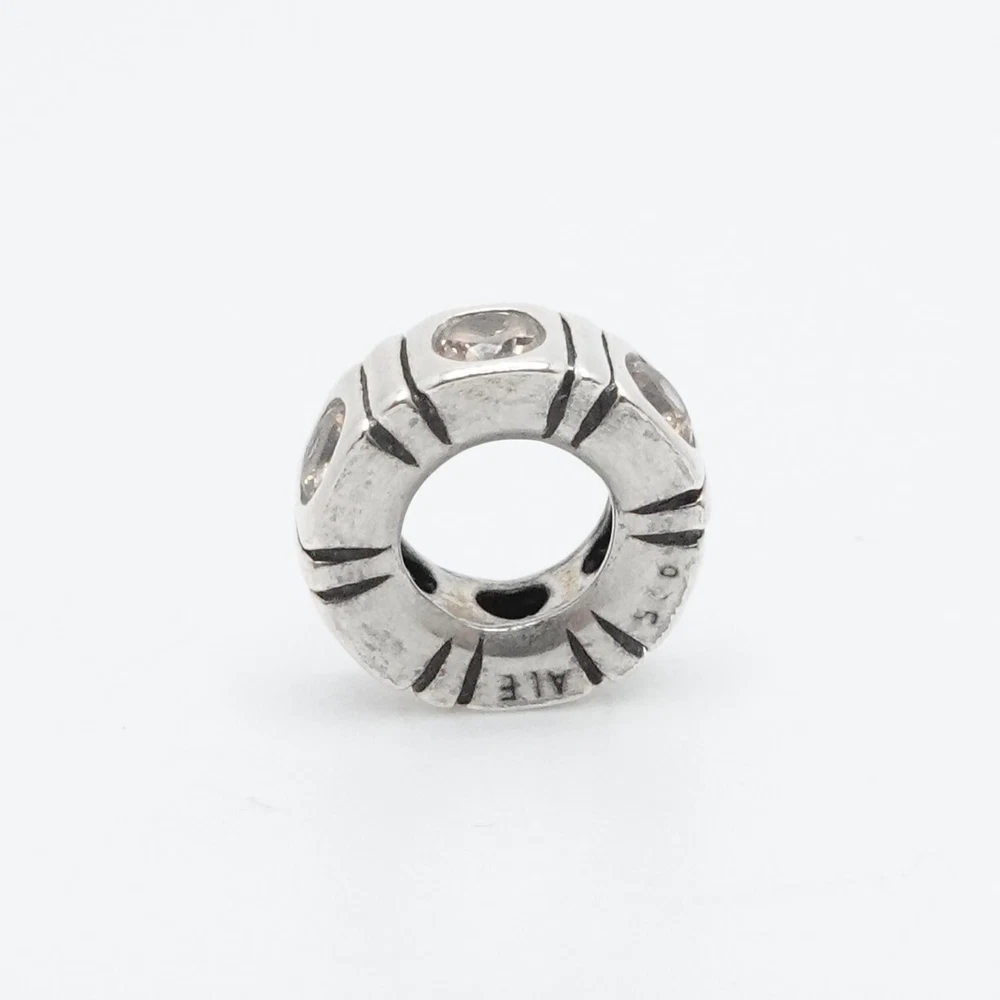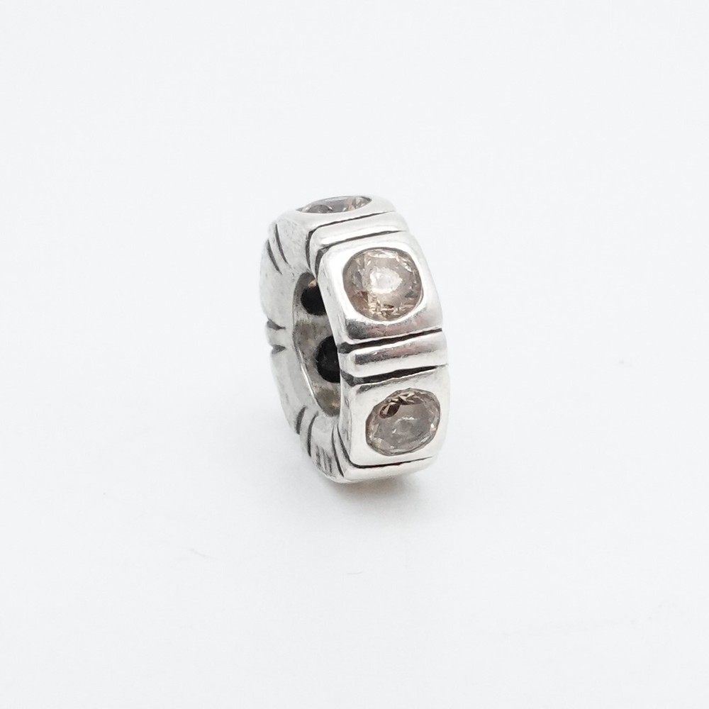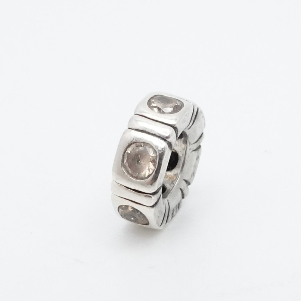 Base Metal: Silver Type: Charm Metal Purity: 925 Main Stone Creation: Simulated Color: Silver Shape: Round Main Stone Shape: Round Brand: PANDORA Main Stone: Cubic Zirconia Main Stone Color: Champagne Setting Style: Bezel Style: Charm Signed: Yes Metal: Sterling Silver Charm Type: Spacer