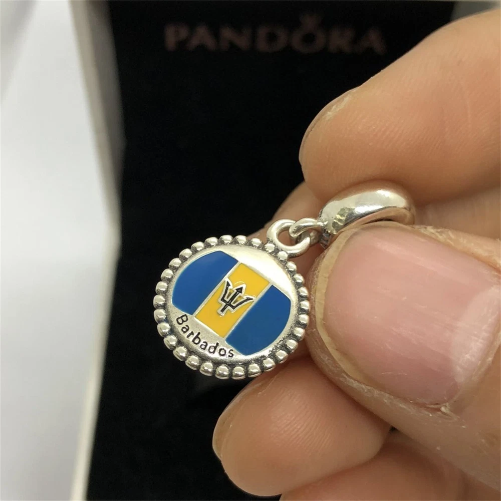 Pandora Barbados Flag Charm Travel Pendant S925 Silver with box