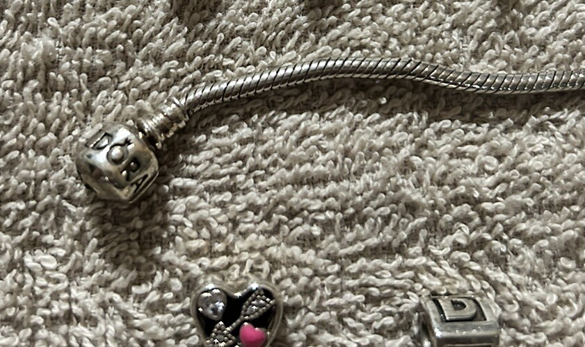 Pandora Bracelet 925 With 14 Assorted Charms 7.5" Sterling Silver. Condition is Pre-owned. Shipped with USPS Ground Advantage.