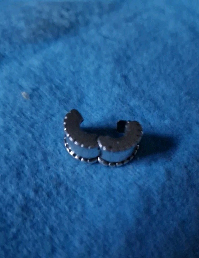 This Genuine Pandora Clip Charm is made of 925 sterling silver and is hallmarked. It features a simple clip style, part of the Pandora collection. The charm does not have a main stone and is in good condition despite being used. Perfect for adding a touch of elegance to your charm bracelet.