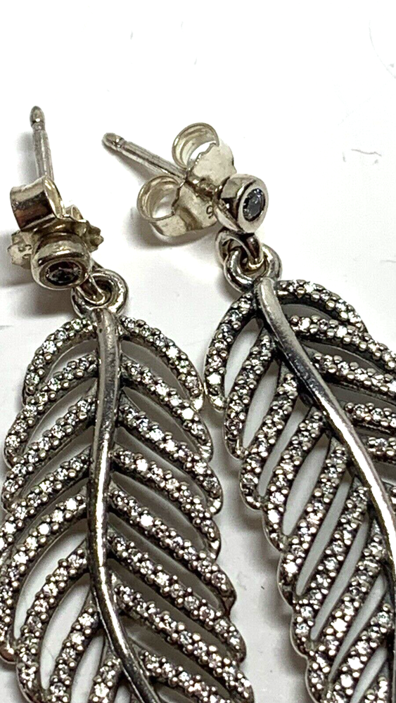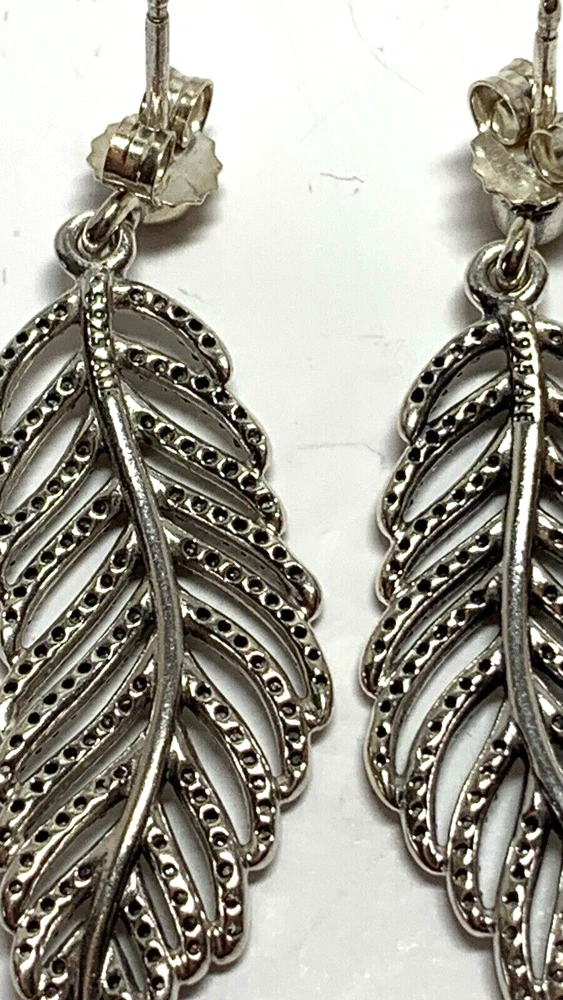 Crafted in sterling silver in a leather shape adorned with Cubic Zircona. Stamped S925 Ale. Butterfly clasp marked 925 Dangle 1.5" ThriftLOVE is a nonprofit thrift shop that offers mentored sustainable employment to adults with special needs and/or limited skill set.