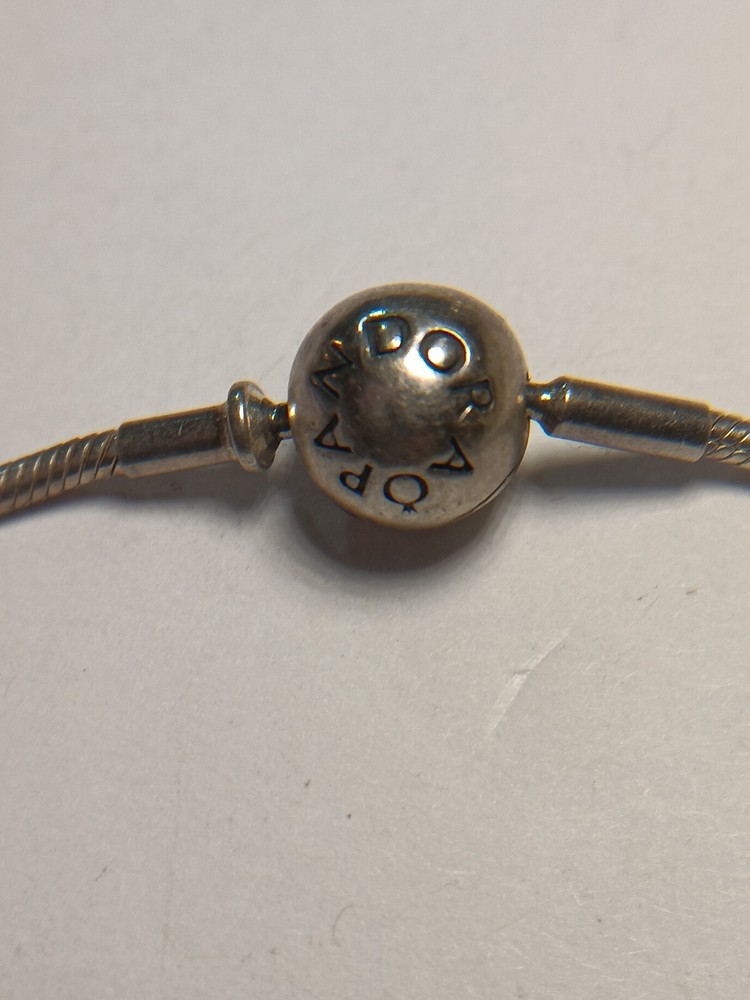 This is a Pandora Moments sterling silver snake chain bracelet, measuring 7.5 inches in length. It is signed by Pandora and does not feature any stones. Ideal for occasions like Mother's Day, anniversaries, birthdays, and more.