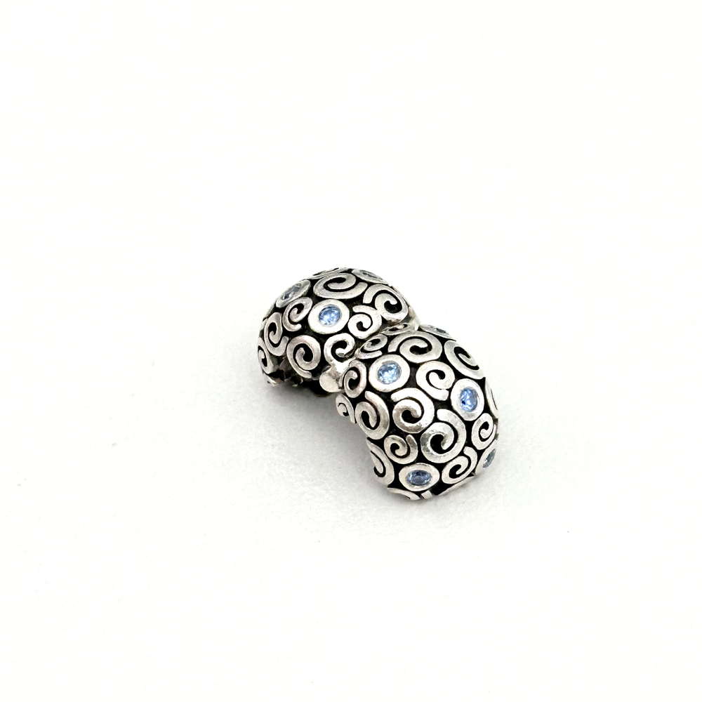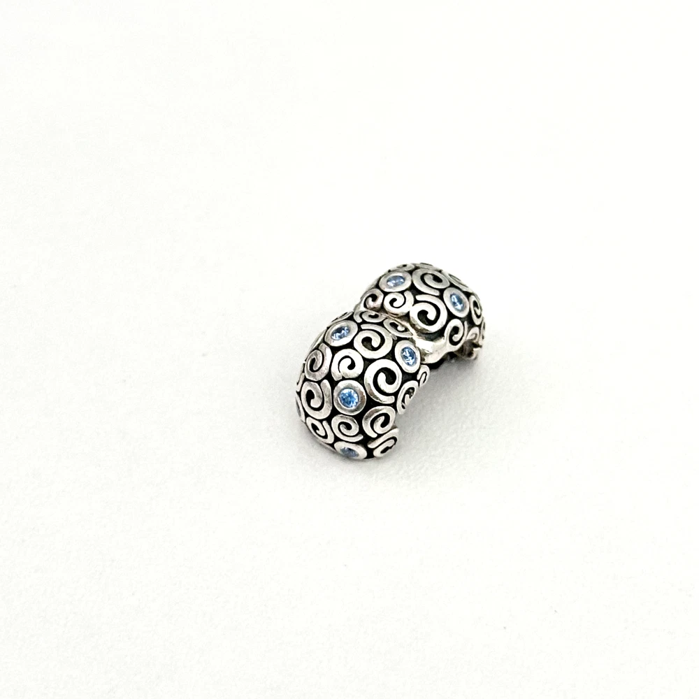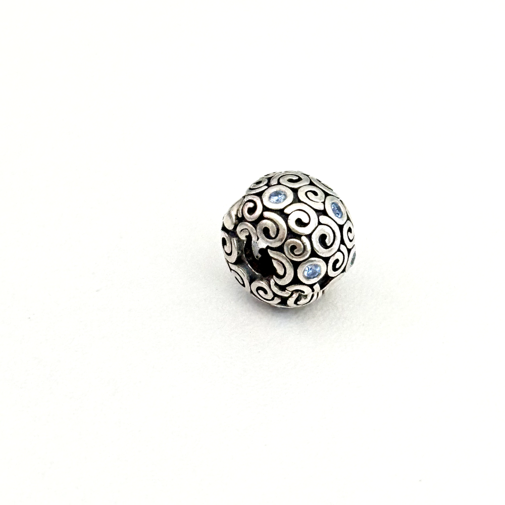 Authentic Pandora 925 Sterling Silver Blue CZ Abstract Swirls Retired Clip Bead Charm Signed: S925 ALE Rare & retired Very good condition. - Fast shipping, I ship the same or next business day! I also combine shipping. - Thank you so much for shopping with me and please check out my other jewelry listings, I post new pieces daily!