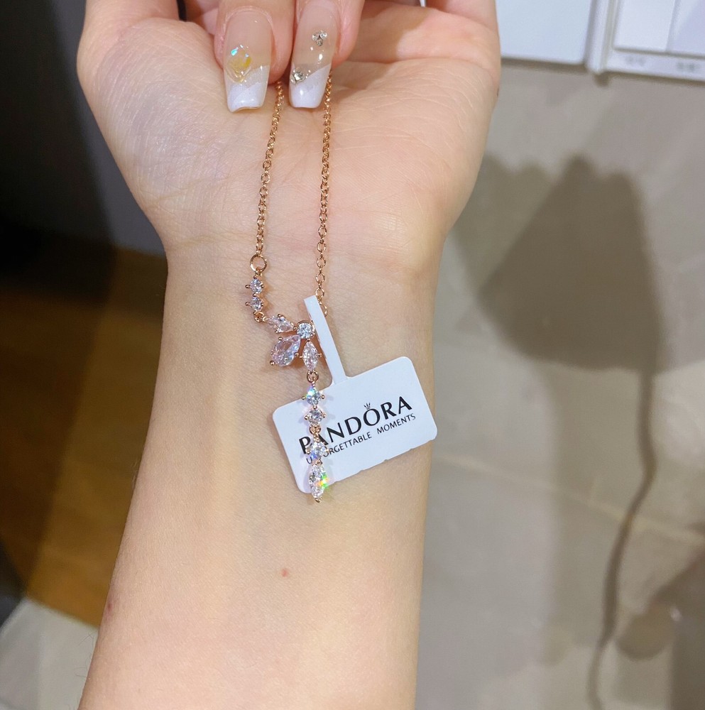 Pandora Rose Gold Sparkling Herbarium Cluster Drop Collier Necklace