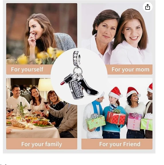 Product Description Material : Crafted from premium 925 sterling silver, this charm is lightweight, stylish, and designed for long-term wear. Its high-polish finish ensures a lasting shine, making it a timeless addition to your jewelry collection. Inspiration : This charm draws inspiration from the elegance of a formal dinner party. Featuring a dinner bag adorned with sparkling diamonds, an elegant pair of high heels, and a chic lipstick, it embodies the beauty and sophistication of a lady's refined style. Charms for DIY Jewelry Making : With a perfect diameter of 4.8mm-5.0mm, this charm is compatible with most American and European bracelets, including Pandora, Biagi, Troll, and Chamilia. It's an excellent choice for creating unique bracelets or necklaces that reflect your personal style. Unique Gift for Women : This charm is an ideal gift for the special women in your life—whether it’s your daughter, mother, wife, sister, friend, or grandma. Perfect for any occasion, it’s a heartfelt token that’s sure to capture her heart. Package Includes : 1 x 925 sterling silver charm 1 x Jewelry bag 1 x Jewelry cleaning cloth The charm comes beautifully packaged, ready to delight someone special or to add a touch of elegance to your own collection.
