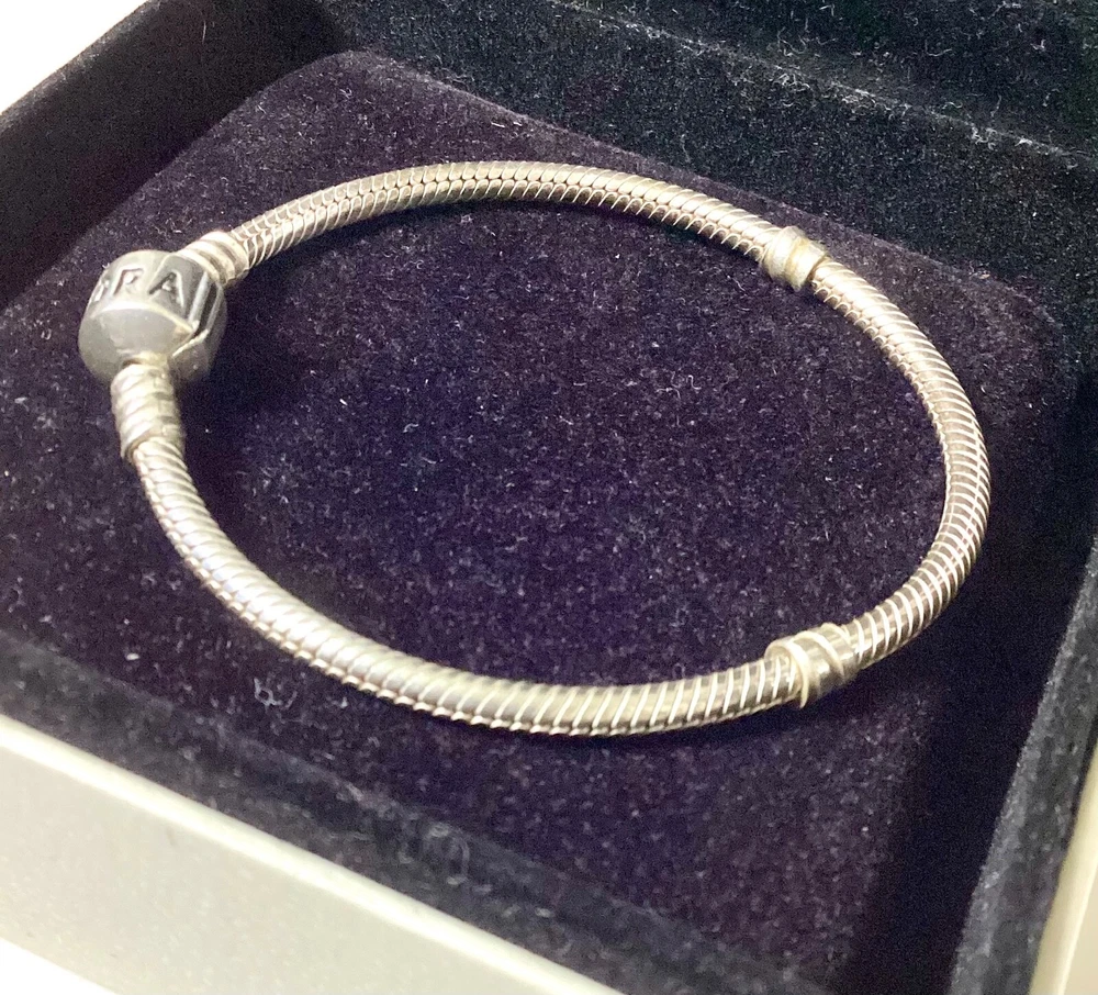 Pandora Silver Snake Chain Bracelet Pre-loved in Very Good Used Condition Boxed, but Please Note there is a Small Mark on the Box Length 17 cms s925 ALE Please see my other items which you may also be interested in