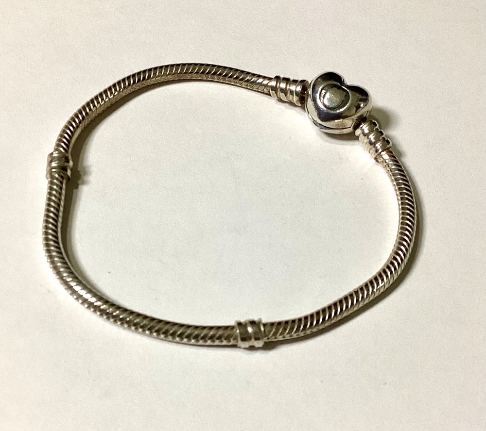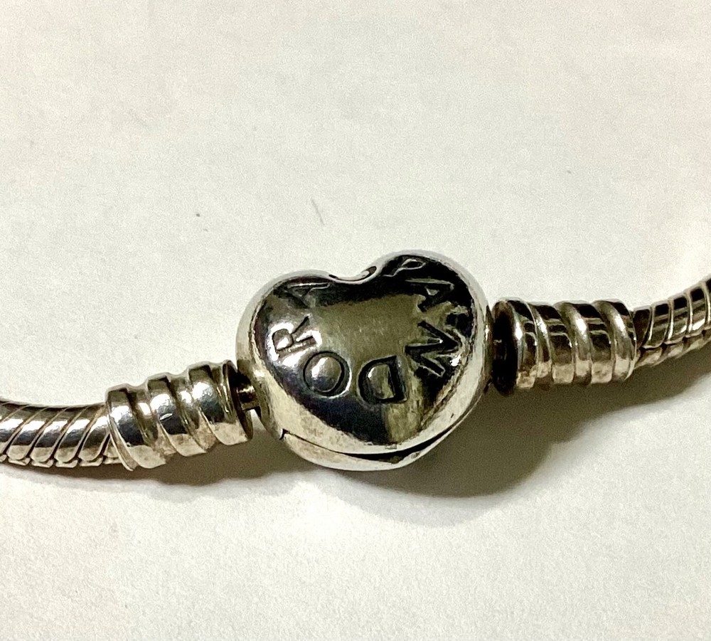 Pandora Silver Snake Chain Heart Clasp Bracelet Pre-loved in Very Good Used Condition Length 18.5 cms s925 ALE Please see my other items which you may also be interested in