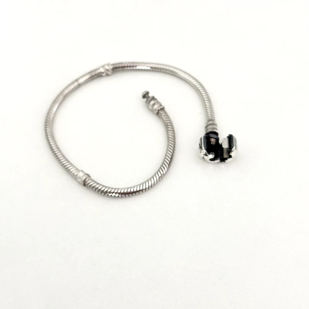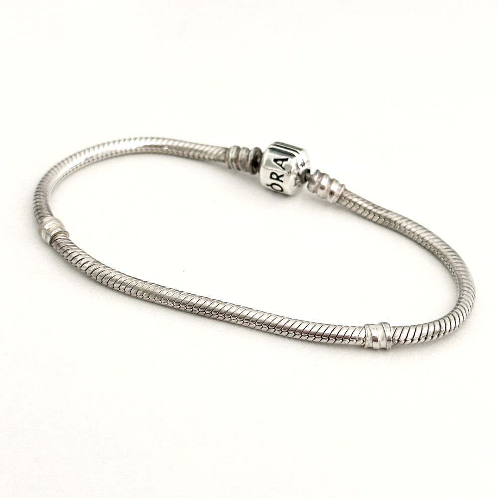 Pandora Sterling Silver Snake Chain Charm Bracelet with Barrel Clasp 7.5 Inches