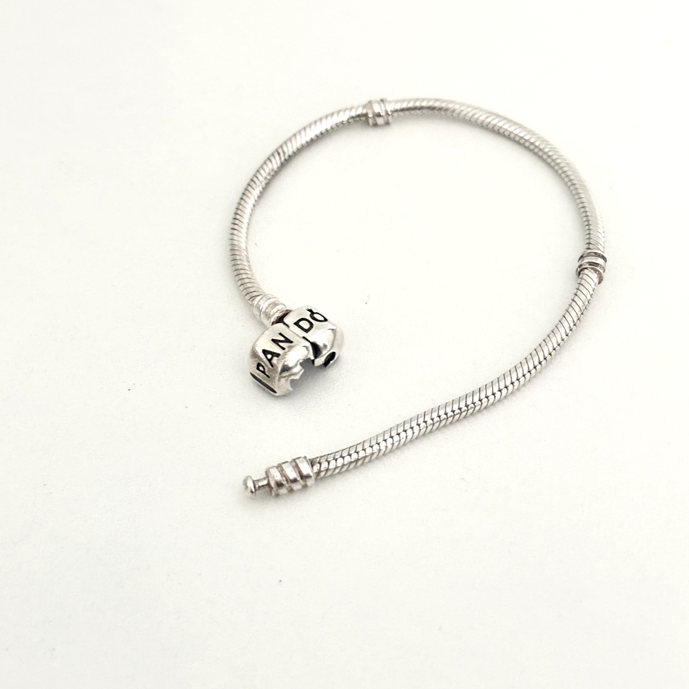 Authentic Pandora 925 Sterling Silver Moments Snake Chain Barrel Clasp Charm Bracelet Size: 7.5" Signed: 925 ALE Very good condition. - Fast shipping, I ship the same or next business day! I also combine shipping. - Thank you so much for shopping with me and please check out my other jewelry listings, I post new pieces daily!