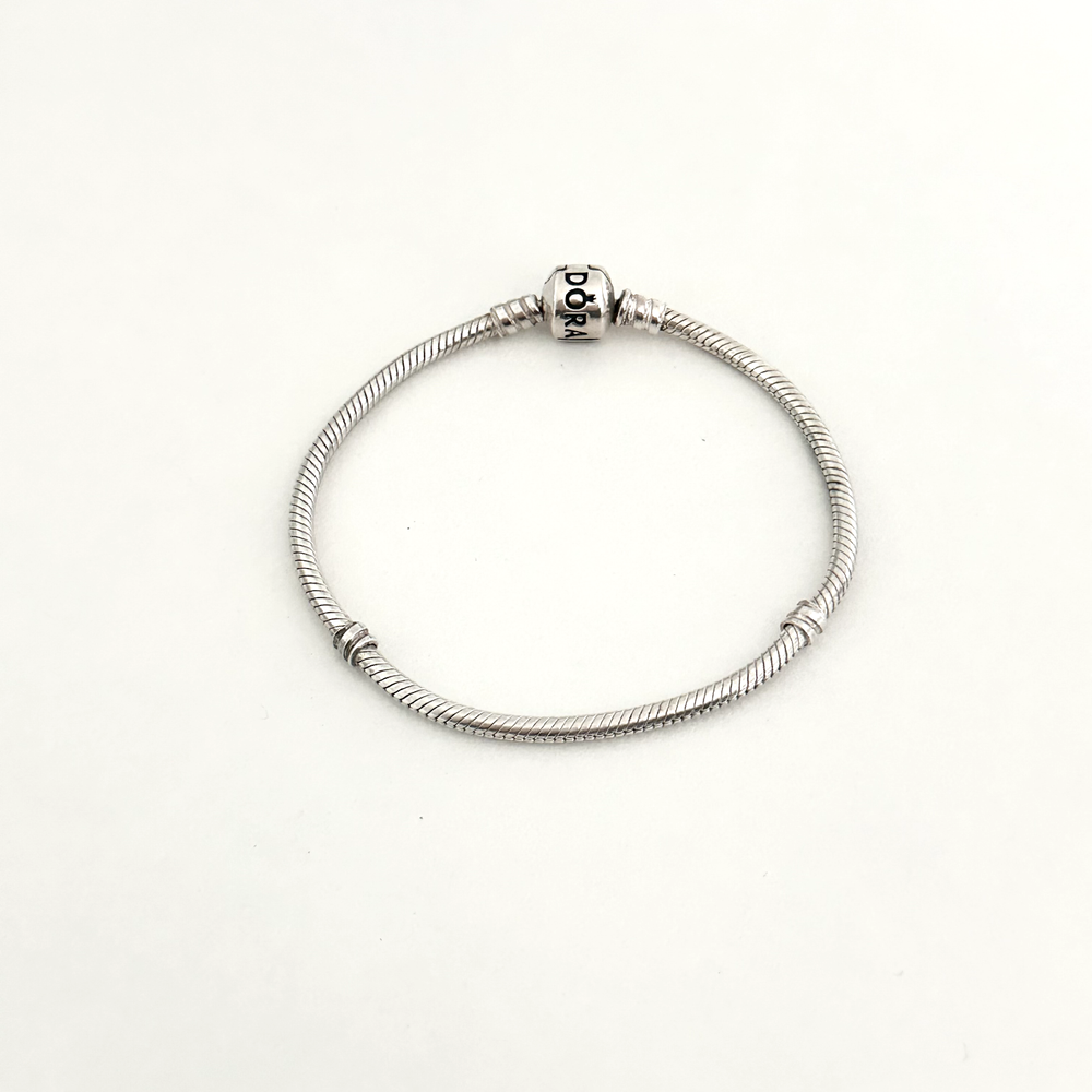 Pandora Retired Moments Snake Chain 925 Silver Charm Bracelet 7.5 Inch