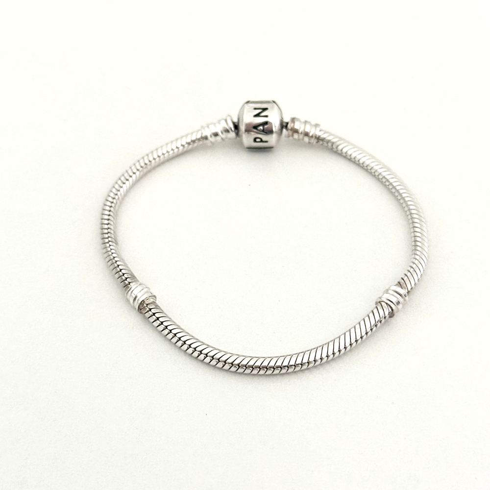Pandora 925 Sterling Silver Moments Snake Chain Barrel Clasp Charm Bracelet 7.5"