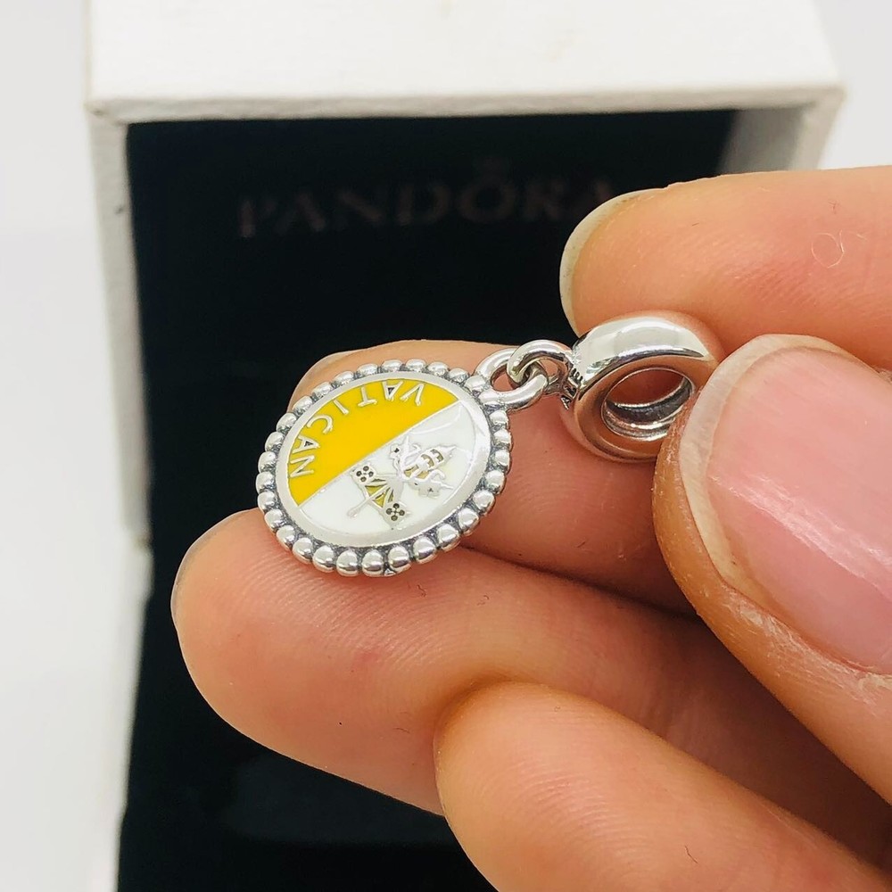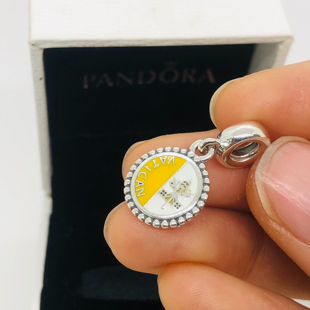Theme: Family & Friends, Travel & Places, Vatican Flag Seller Warranty: Yes Secondary Stone: Cubic Zirconia gtin13: Does not apply Shape: Round UPC: Does not apply Charm Type: Dangle Main Stone: Cubic Zirconia Brand: PANDORA Seller Notes: “new,no used” Occasion: Anniversary, Birthday, Christening, Christmas, Engagement, Graduation, Mother's Day, Valentine's Day, Wedding, Confirmation/Communion, Father's Day Color: Yellow Style: Charm Material: Enamel, Glass, Stone, Metal Type: Charm Vintage: No