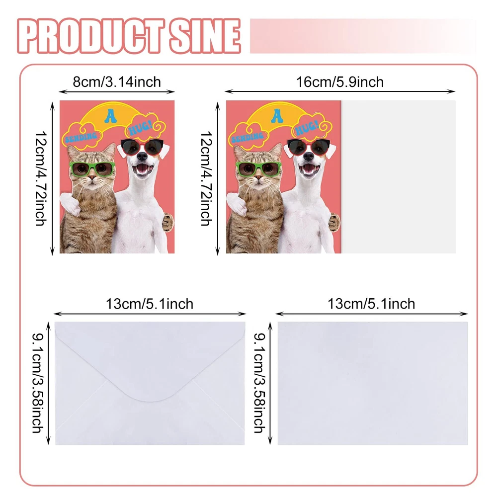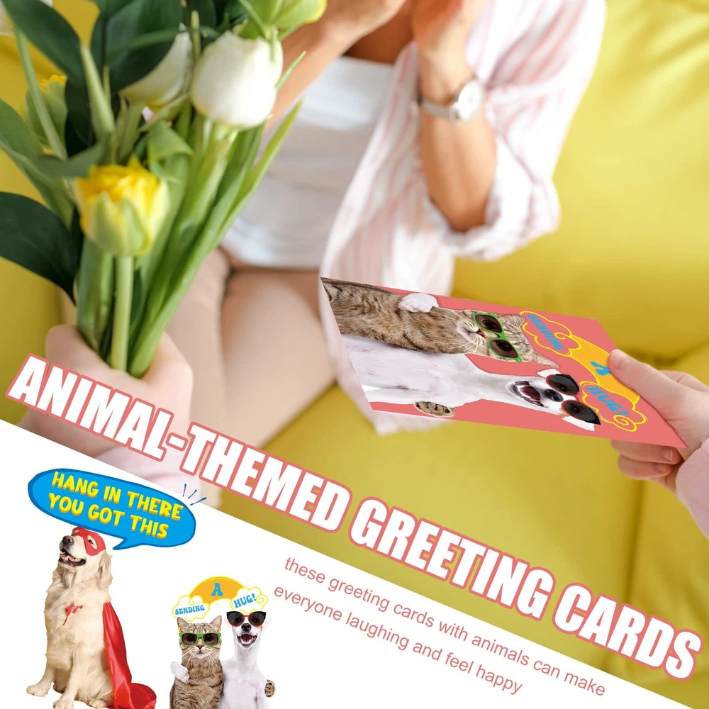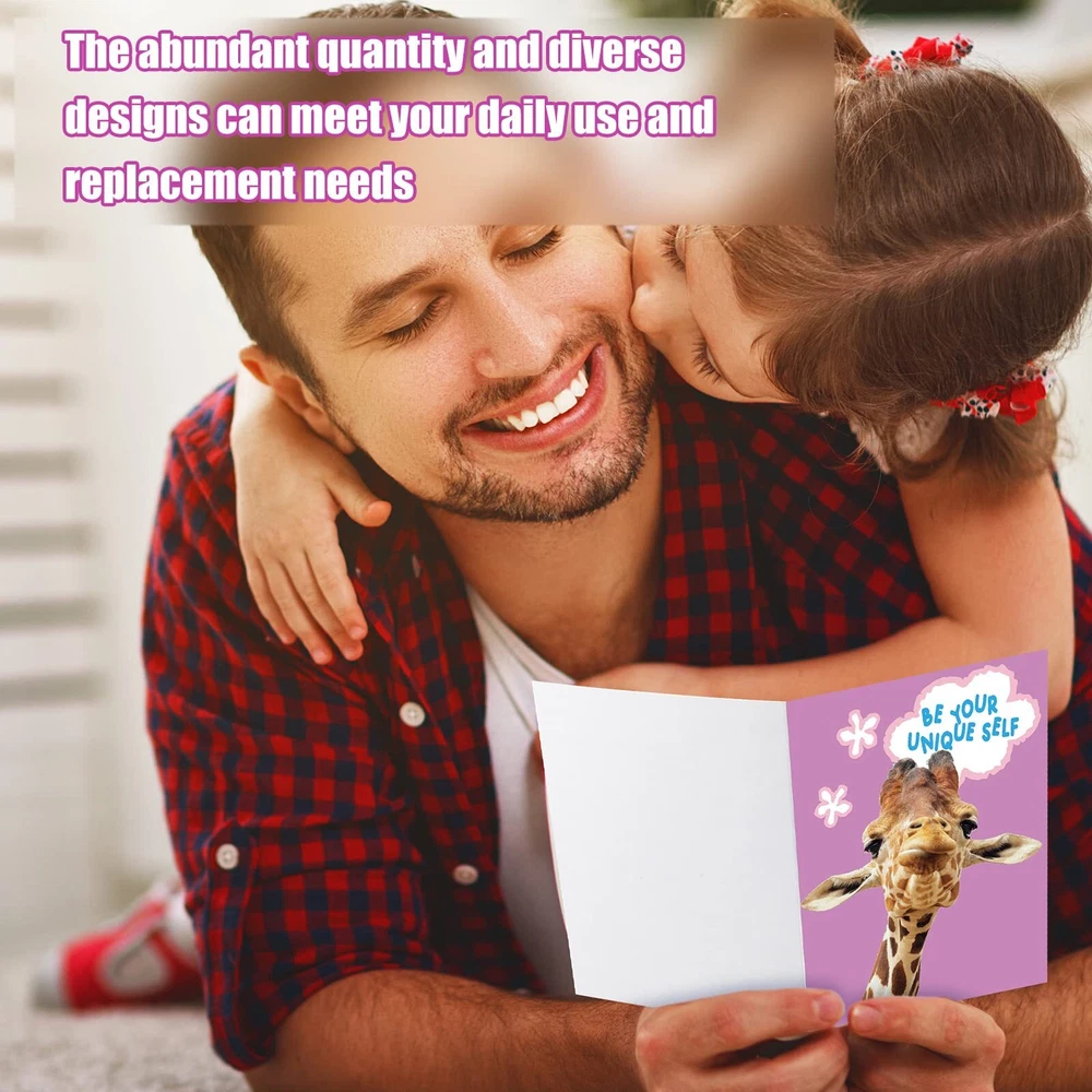 Features: Use your imagination: The interior of the cute animal note cards is blank, so you can write or draw according to your preference to make your guests happier and have fun, fully use your imagination to DIY, which can exercise your hands of ability and develop your concentration. Easy to match: Considering the funny and cute designs, bright and vibrant colors, the blank animal greeting cards are easy for you to match well with various styles of occasions. Besides, they can keep harmonious with different gifts styles, and can bring refreshed feelings. Specifications: Material: paper Color: as shown in the pictures Size: Animal funny greeting cards: about 4.72 x 3.15 inches/ 12 x 8 cm when unfolded, and about 4.72 x 6.3 inches/ 12 x 16 cm when unfolded White envelopes: about 5.47 x 3.58 inches/ 13.9 x 9.1 cm Package includes: 60 x Animal funny greeting cards 60 x White envelopes Notes: Manual measurement, please allow slight errors on size. The color may exist a slight difference due to different screen displays. Ample Quantities to Use and Share: you will get 60 pieces of animal funny greeting cards with 30 different designs, 2 pieces for each design, and 60 pieces of white envelopes; The abundant quantity and diverse designs can meet your daily use and replacement needs, and you can share them with family and friends Material You Can Count on: the funny motivational cards and envelopes are made of quality paper material, sturdy and reliable, not easy to tear or break, printed clearly in bright and vivid colors, hard to fade, serving you for a long time Proper Size: the folded size of our funny thank you cards is about 4.72 x 3.15 inches/ 12 x 8 cm, and about 4.72 x 6.3 inches/ 12 x 16 cm when unfolded, big enough for you to write down what you want; The envelopes measure approx. 5.47 x 3.58 inches/ 13.9 x 9.1 cm, matching well with the cards Funny Animal Designs: printed with 30 different funny animal patterns and motivational phrases, these greeting cards with animals can make everyone laughing and feel happy, and are suitable for most occasions Widely Applicable: with fine workmanship and vivid colors, our thank you cards with envelopes are attractive and modern; So you can use them for most occasions, such as bridal showers, weddings, small businesses, compassion, birthdays, etc., expressing your sincere gratitude