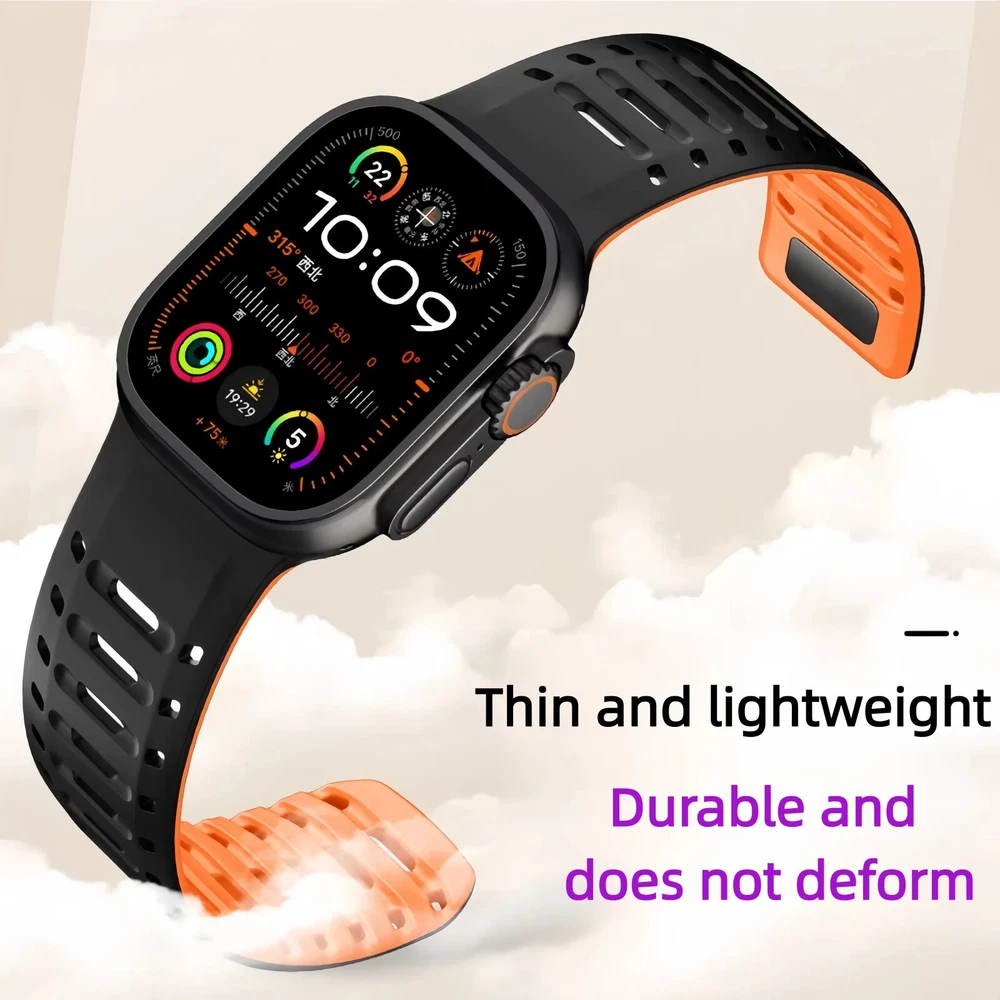Pangolin armor magnetic silicone strap for Apple Watch 10 9 8 Ultra 2 42/46/49mm Features: 【 High-quality Materials】 The pangolin magnetic silicone strap is molded with high-performance silicone, which is soft on the skin, more fashionable and comfortable, breathable, and not afraid of sweat. 【 Security & Easy to install】 The durable Pangolin Magnetic Silicone Wristband features a fastening buckle and a powerful magnetic attachment that prevents your Apple Watch from falling off and loosening. Upgraded connectors at both ends lock precisely and securely. No tools are required, simple and straightforward installation and one-click disassembly. 【 Suitable for all scenes】 It is suitable for a variety of scenarios, especially suitable for hiking, running, outdoor activities and other sports. Creating the ultimate sports watch for athletes of all types requires a unique approach. That's why the dedicated strap for outdoor adventures, endurance training, and water sports is as carefully crafted as the watch itself. 【 For Wrist Size 】 Suitable for 5.51"-8.26"(140mm-210mm) wrist. Compatible With: > For Apple Watch Ultra / Ultra 2 > For Apple Watch Series 10 / Series 9 / Series 8 / Series 7 / Series 6 / Series 5 / Series 4 / Series 3 / Series 2 / Series 1 / > For Apple Watch Nike > For Apple Watch Hermes > For Apple Watch SE Package Includes: 1xPCS Magnetic silicone strap ONLY!!! (PS: The Apple Watch is Not Included)