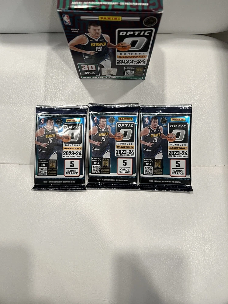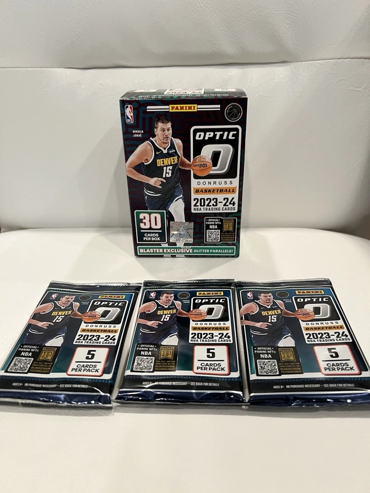 Panini Donruss Optic Blaster Packs 23-24 Lot Of 3! Wemby Rookie Hunting!! This lot includes three Panini Donruss Optic Blaster Packs from the 2023-24 season, featuring Wemby Rookie Hunting cards of Stephen Curry, LeBron James, and Luka Dončić. The cards are in standard size and come from the National Basketball Association (NBA) league. The set is configured as a box, and the cards are in English language. The manufacturer is Panini, and the cards are not vintage. The season is 2023-24, and the cards are sports trading cards. The lot is perfect for basketball fans and collectors who are looking for a great addition to their collection.
