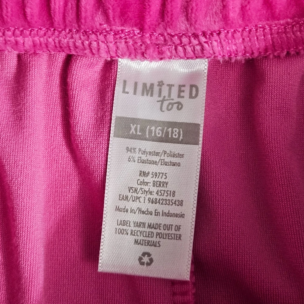 The Pant Velour Berry Pockets Wide Leg Drawstring Youth Girls (16/18) by Limited Too is a stylish and versatile addition to any young girl's wardrobe. Made from cozy velour fabric, these pants feature a relaxed fit with a drawstring waist for added comfort. The wide leg style and pockets add practicality to the jogger design, making them perfect for a range of occasions from casual outings to parties. The vibrant pink color and solid pattern brighten up any outfit, while the 29-inch inseam and size 16/18 cater to older teens. Whether it's for play, school, dance, or any other activity, these Limited Too pants offer both style and functionality.