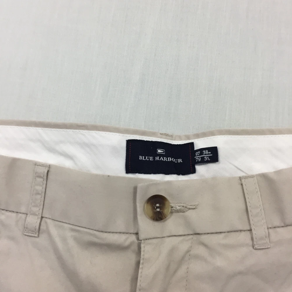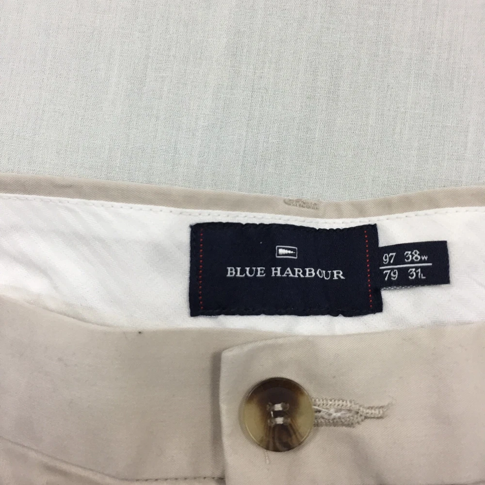 Style: Chino Vintage: No Waist Size: 38 in Size: 38 Leg Style: Straight Personalise: No Pocket Type: Coin Pocket Fit: Regular Season: Autumn, Spring, Summer, Winter Pattern: No Pattern Closure: Button Country/Region of Manufacture: Unknown Type: Trousers Colour: Beige Garment Care: Machine Washable Notas del vendedor: “Good used condition, check below for full description & photos.” Estado del artículo: Usado Occasion: Business, Casual, Travel Rise: Mid (10-12 in) Department: Men Inside Leg: 31 in Fabric Type: Canvas Size Type: Regular Material: Cotton Blend Handmade: No Accents: Button Brand: Blue Harbour
