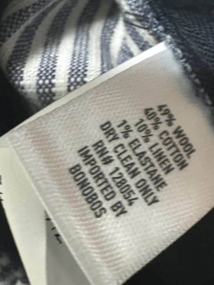 Bonobos Pants Tollegno 1900 Mens Size 34 X 32 Wool Linen Cotton Blend Slim Fit. Shipped with USPS Ground Advantage.