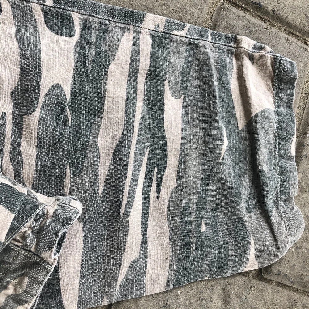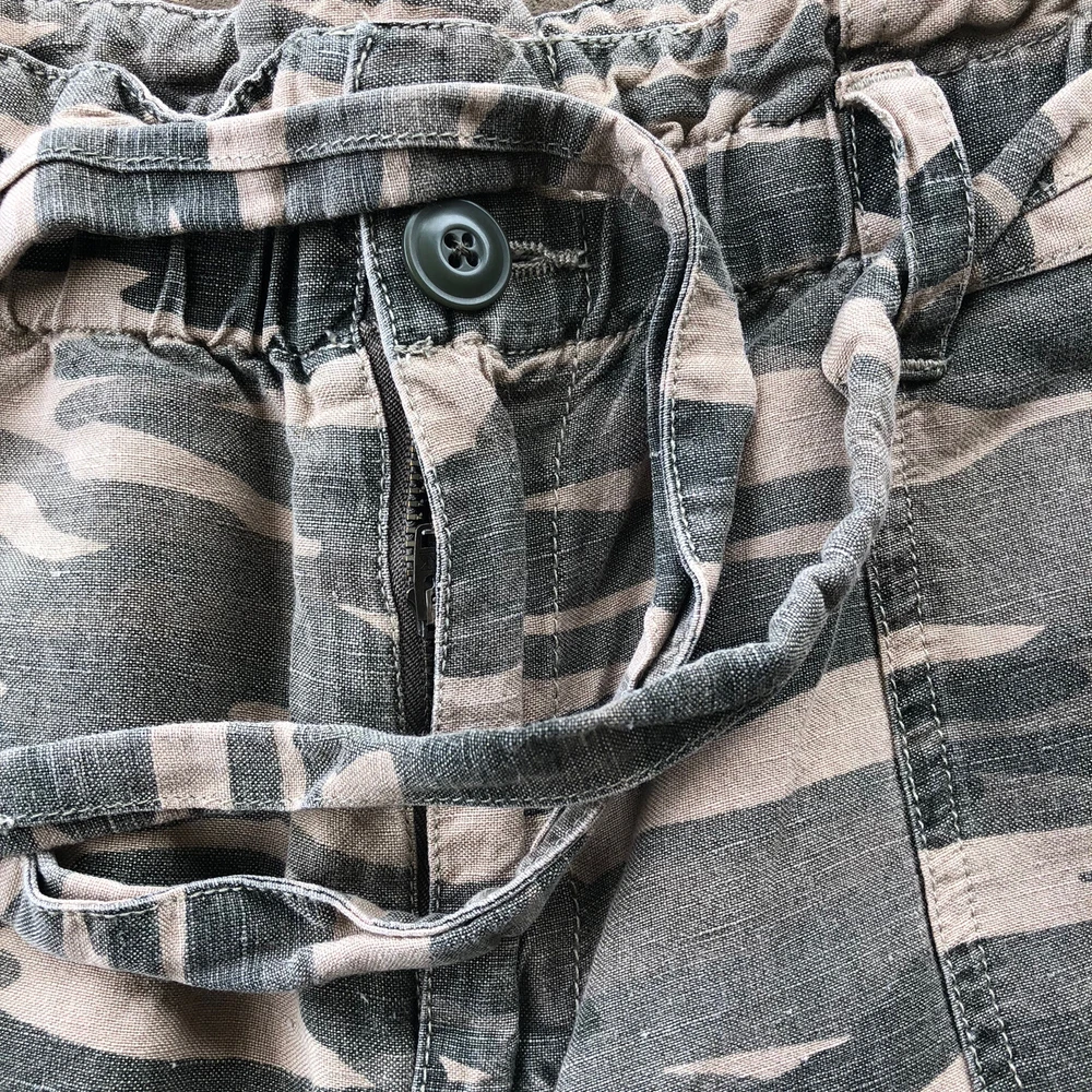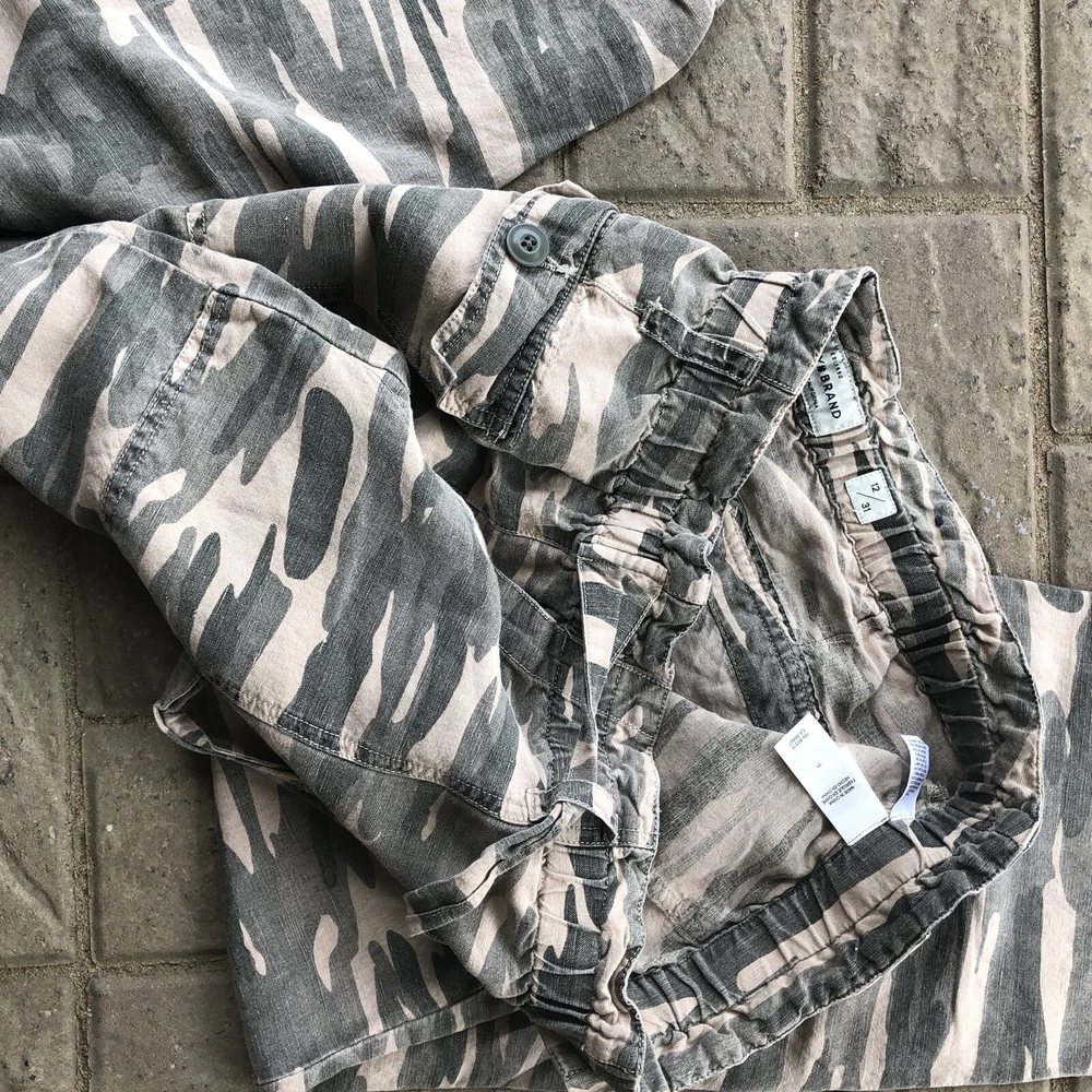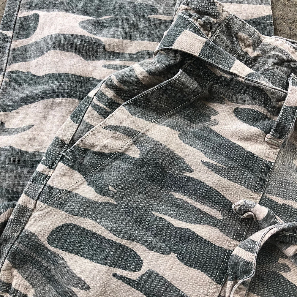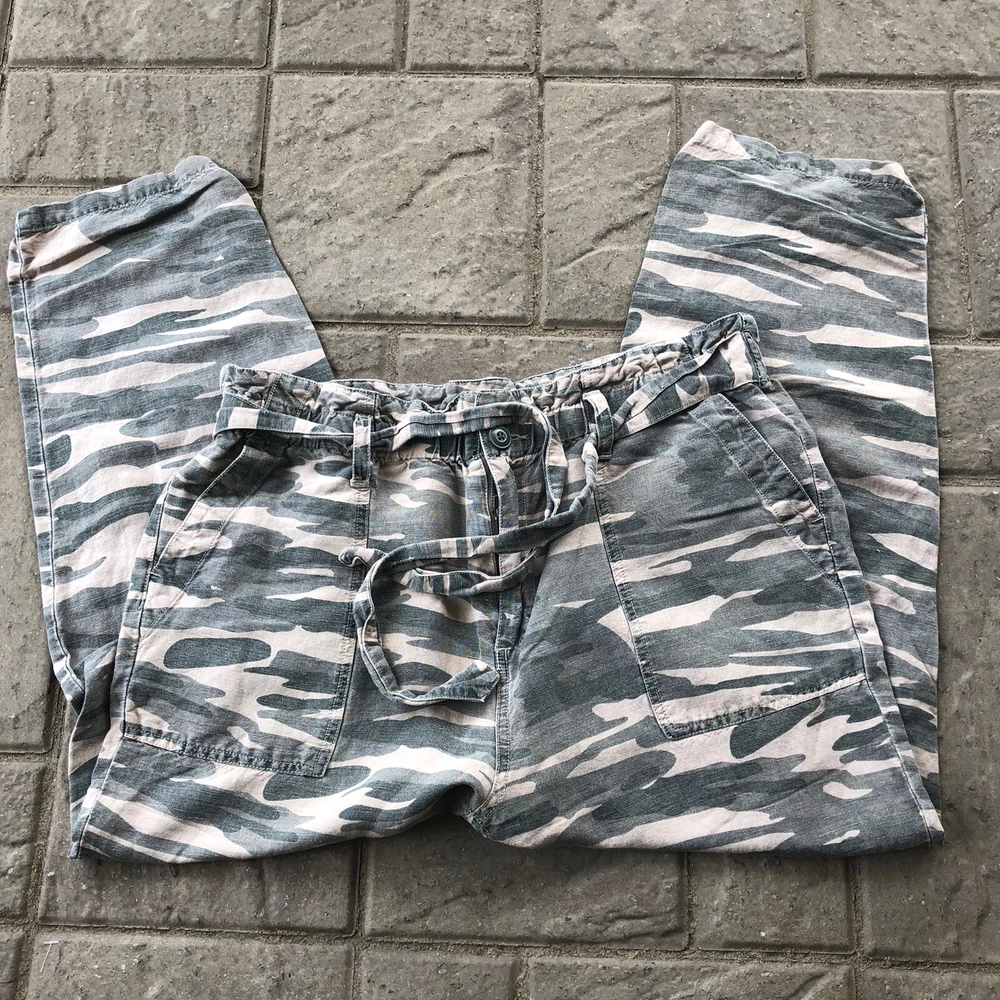 Lucky Brand Khaki Camo Soft Utility Boyfriend Ruffle Waist Linen BlenPants 12/31. Great condition 7W21002 2019 Tie waist Zip Linen rayon 17” waist flat 12” front rise 26” inseam Relaxed loose comfy fit