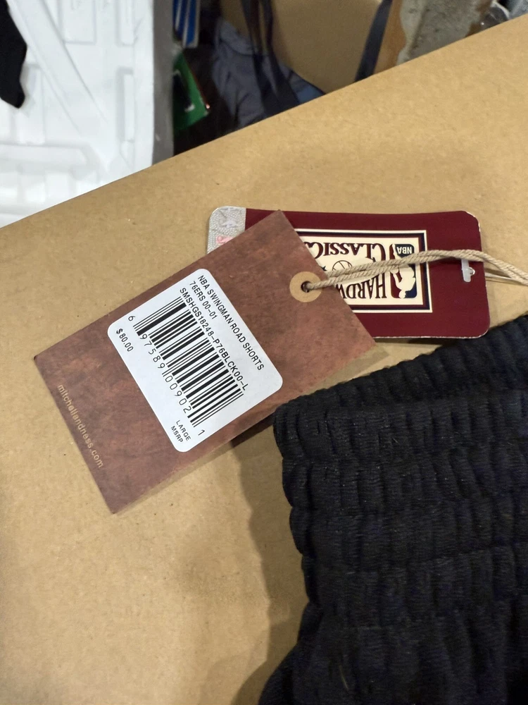 Product:ShortsTeam:Philadelphia 76ersSize:LColor:BlackSport:BasketballLeague:National Basketball Association (NBA)Gender:MenEstado del artículo:NuevoBrand:Mitchell & Ness