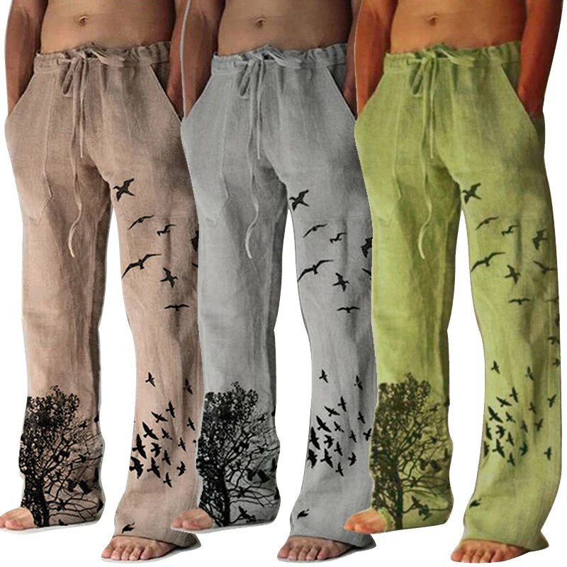 ❀Pantalones harén para hombre informales algodón lino holgados sueltos de gran tamaño yoga hippy pantalones