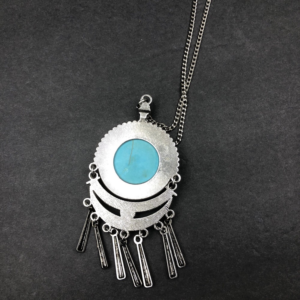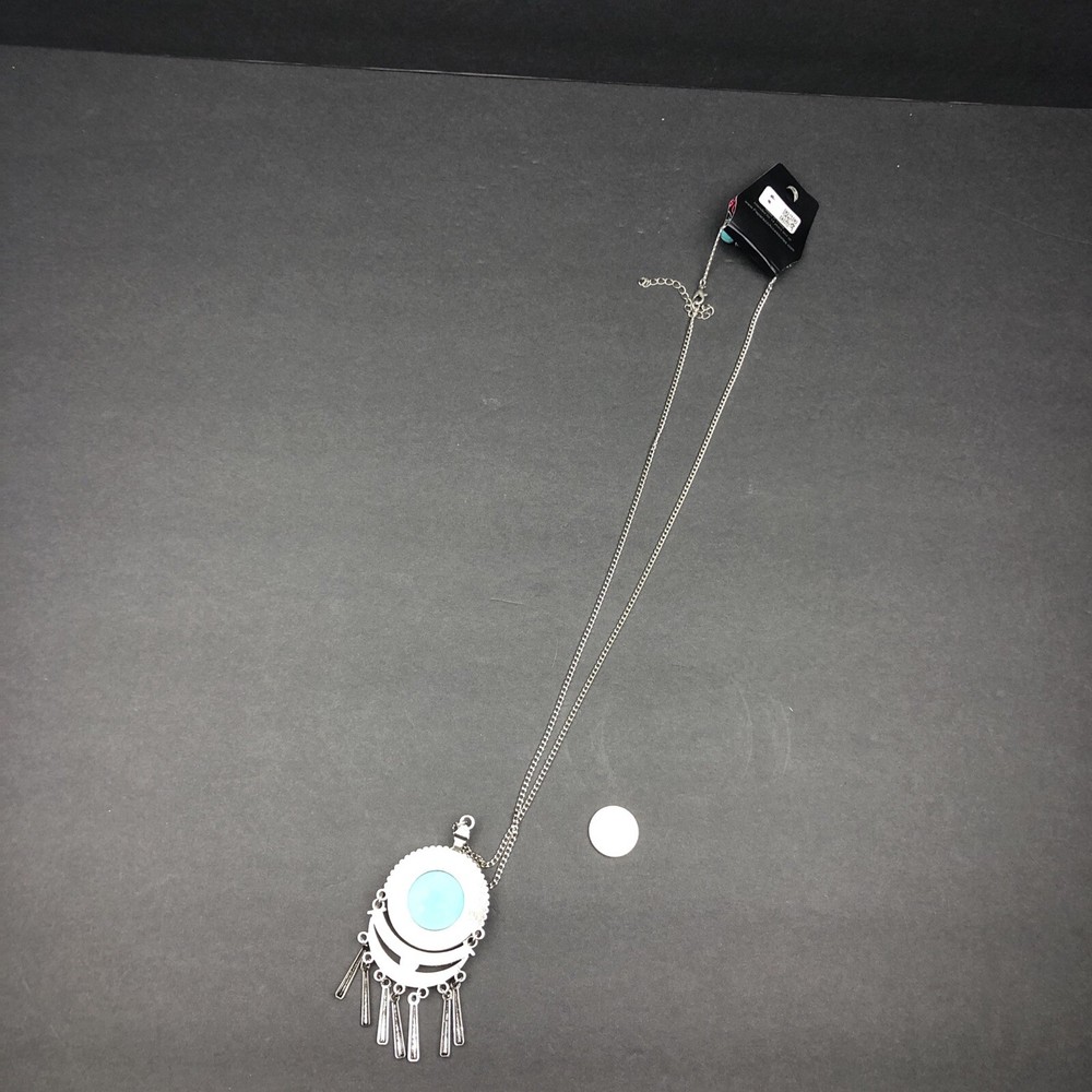 Add some pop of color to your outfit with this Paparazzi jewelry set. The set includes a stunning necklace and matching earrings with round turquoise-colored stones. The metal of the jewelry is unknown but it complements the blue rustler color perfectly. Whether you are dressing up for a special occasion or just adding some flair to your everyday look, this set is sure to catch some attention. The jewelry is new with tags and has not been worn before.