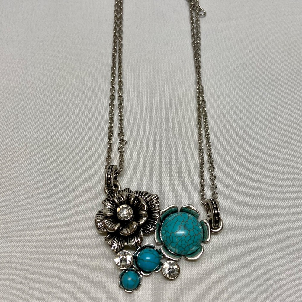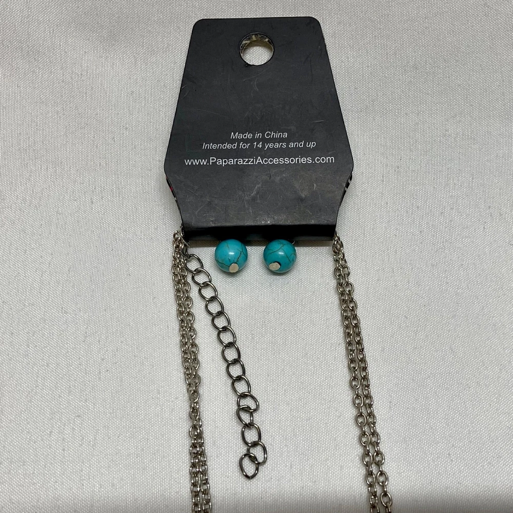 $ 22.7SOO LOVELY ! NWT PAPARAZZI 17" FAUX TURQUOISE NECKLACE/PIERCED EARRINGS SET