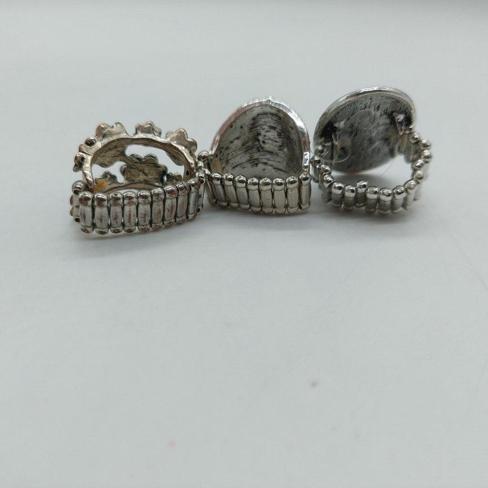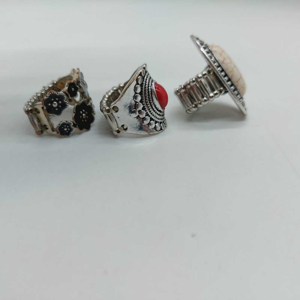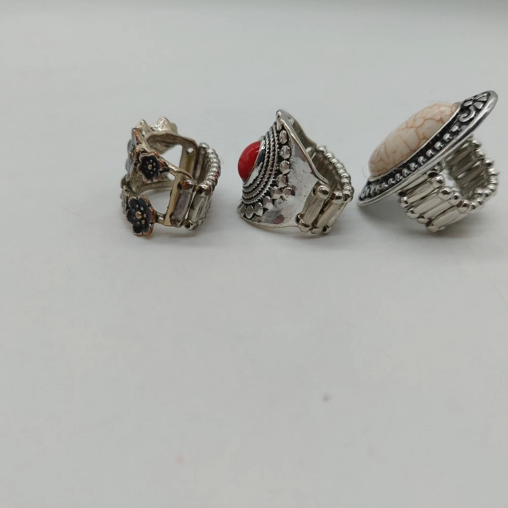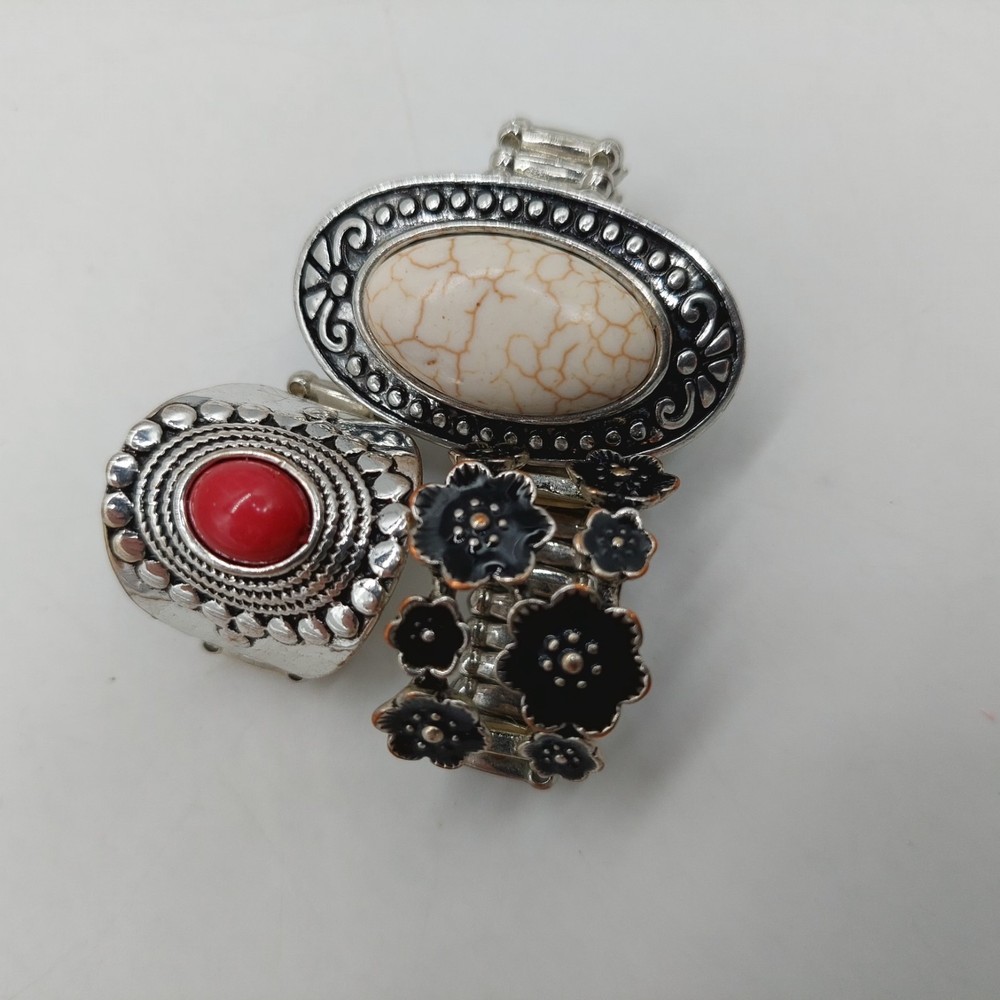 Paparazzi Jewelry Stretch Rings White Red Black Silver Tone Floral Lot Of 3