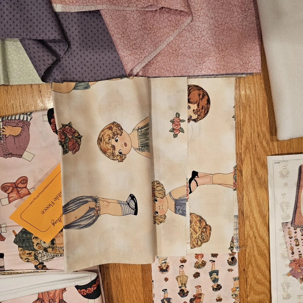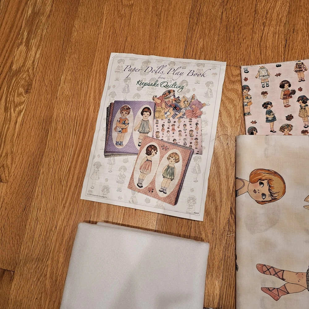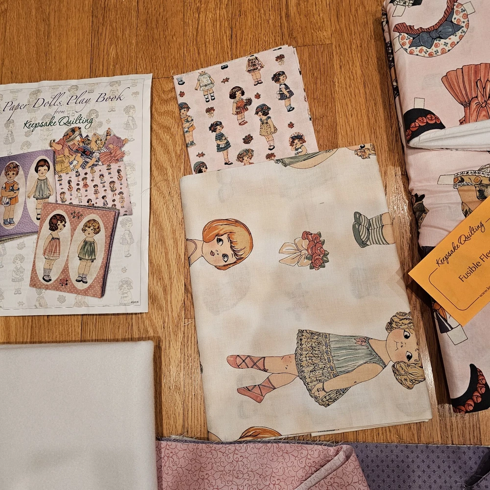 Complete with fabric. Paper Doll Play Book from Keepsake Quilting. Complete with pattern and all the fabric. Hard to find fabric and pattern. See photos.