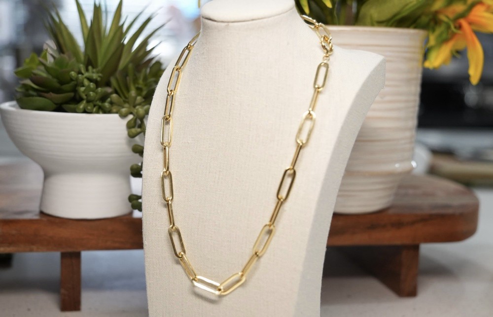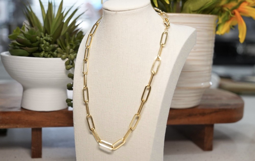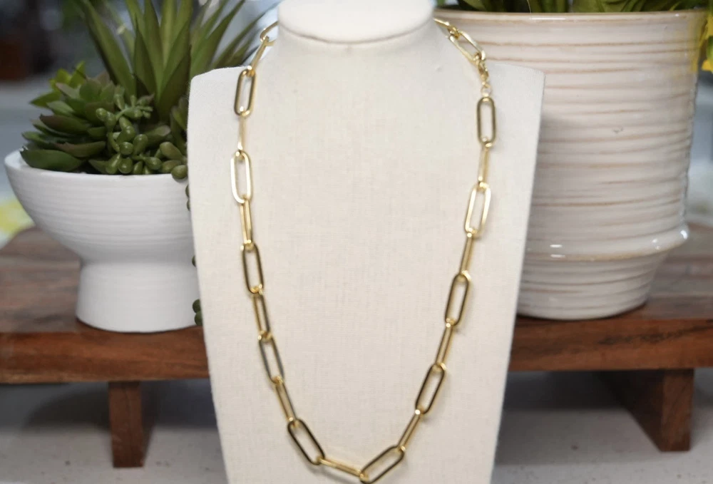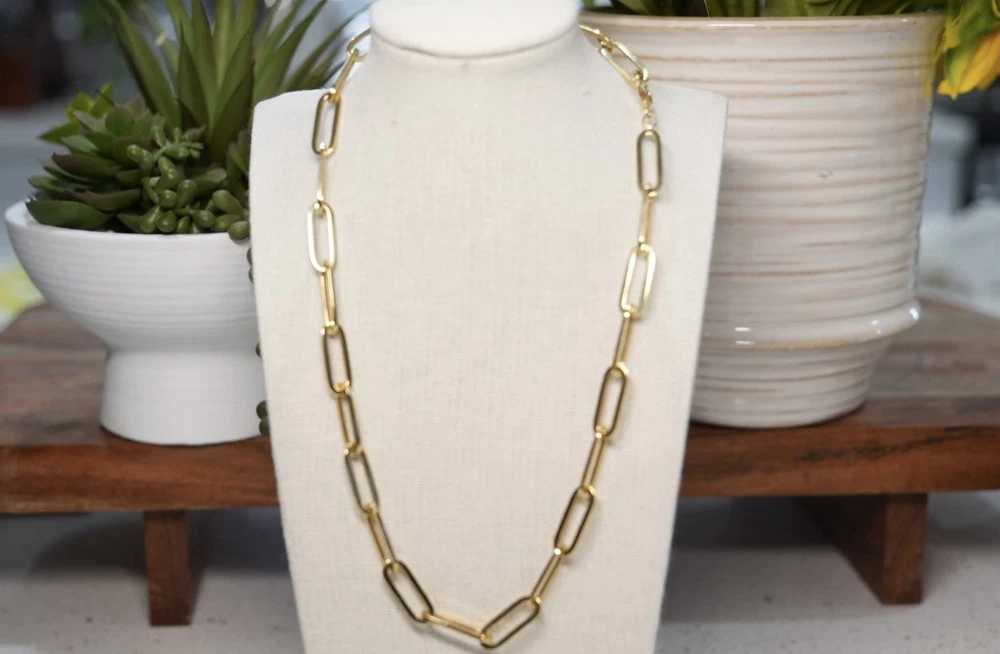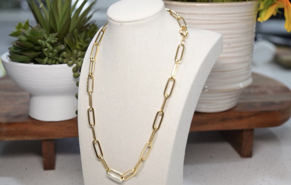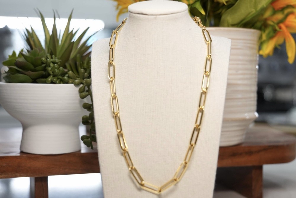 The Paperclip 18K Solid Gold Necklace by Love And Adore Jewels is a stunning piece of fine jewelry featuring a lobster closure and an 18-inch chain length. Crafted in yellow gold. this necklace is perfect for special occasions like anniversaries and birthdays. With its nickel-free feature, this necklace is a timeless and versatile addition to any jewelry collection. Truly good investment piece as price of Gold rises in time.