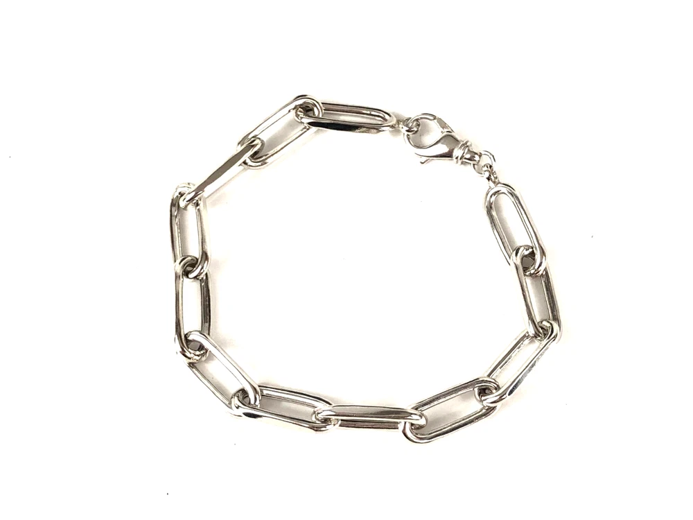 Paperclip Link Sterling Silver 925 Bracelet 9" Pre-Owned Fine Jewelry Paper Clip Type: Bracelet Length: 9" Width: 7.9 mm wide Weight: 12.5 gr Clasp: Lobster Hallmark: AK 925 Condition: Scattered light scratch nothing serious, clasp is secure, easy to polish Comments: A well made bracelet, nice and solid Please see all photos for details SO12CON