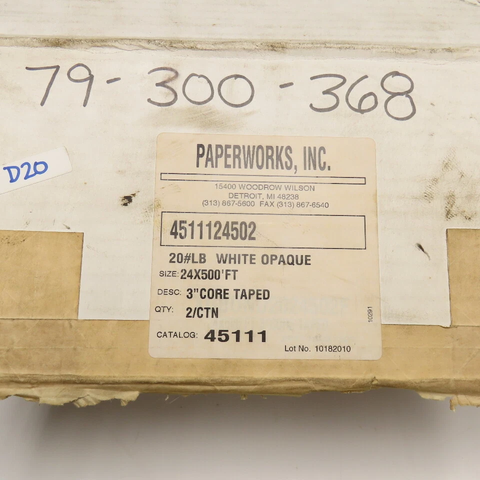 Paperworks Inc. 20#LB White Opaque Roll Paper 24" x 500' Lot Of 2 Rolls SKU: 240203 Brand: Paperworks Inc. Size: Length: 16 in. Width: 28 in. Height: 8 in. Condition: New/Other Country of Manufacture: United States Consigner: B Items in Lot: 2 Lister: gn MPN: 4511124502 Weight (lbs, oz): 36, Warehouse Location: NA22183 (Please reference this SKU number when making inquiries.) SKU: 240203 3" Core ABOUT Our #1 goal is Customer Satisfaction. CONTACT INFO Contact us Monday - Friday 7am-4pm EST with any questions. BULLSEYE INDUSTRIAL SALES, LLC Bullseye Industrial Sales is proud to be a dedicated supplier to the manufacturing industry. We are a leading source for quality new and used equipment. We understand that keeping your equipment running is vital keeping your customers happy and we can provide equipment or replacement parts to get your machine or next project back on schedule. All of our items listed are in stock at our 180,000 sq/ft Middlebury warehouse and will ship your purchase within 1 business day, Expedited shipping available. We get hundreds of items in daily, if we don’t have it today check back tomorrow. PAYMENTS PayPal, Credit/Debit Card, Wire Transfer in USD, Company Check, or Personal Check. If the purchase is paid for with a check, the item will not ship until check clears. For customers who want to claim tax-exempt, you will need to send a tax-exempt form to eBay. eBay collects all sales tax, we have no control. To send your tax-exempt form to eBay, copy and paste the following link in your browser: https://www.ebay.com/help/buying/paying-items/paying-tax-ebay-purchases?id=4771#section2 DOMESTIC SHIPPING The shipping price is shown for US lower 48 states. Please enter your zip code (or country) and quantity in the shipping tab for an accurate shipping quote. Need it urgently? Next Day & Second Day Air Services are available. Call us and we will do what we can to get it to you quickly. We ship USPS, UPS & FedEx. We choose the carrier. If you prefer, we can ship using your account. Please choose Local Pickup at checkout and included the following info: Account number, billing zip code, and shipping service requested (ground, next day air, second-day air...) Note that we CANNOT issue partial refunds for shipping that was paid! Items paid for before 9:30 AM (EST) will usually ship out the same business day. Large items that require an LTL shipment generally go out the next business day. Larger items that must be shipped via flatbed truck will ship as soon as the truck can be secured, usually no more than 3-5 business days. If an item needs to be shipped by freight courier, the buyer must contact us to request an invoice. FREIGHT ITEMS Please DO NOT pay for freight items until freight charges have been added to the invoice. eBay will not automatically charge you freight. To get a freight quote, send us a message through eBay. To get a freight quote we will need to know the following: Will this be shipped to a commercial or residential address Will there be a dock or forklift Your full shipping address Your phone number and business name If you would like to set up your own freight, we will palletize the business day after payment is received and send you weights and dimensions. The buyer will then be responsible for scheduling the pickup and sending us the BOL. Please make sure that we have the BOL BEFORE the truck gets here to pick up the freight. We do have a charge to palletize for LTL freight, please contact us with the item number or SKU number from the listing for a cost on palletizing. LOCAL PICK-UP Prefer to pick it up yourself? You are welcome to do so, by appointment. We will load it free of charge unless otherwise stated in the listing. If your purchase requires a pallet, banding or any other form of packaging, a packaging fee may apply. INTERNATIONAL SHIPPING We will ship worldwide. Please remember your item must go through customs which can delay receiving your item in a timely manner. We will not mark your item as a gift or pay any customs fees. Any and all extra fees incurred for international shipping are the responsibility of buyer. RETURNS Customer satisfaction is our #1 priority!! We have a 30-day return policy. If you are not completely satisfied with your purchase, please contact us to return your purchase within 30 days of receiving your item, and we will refund you for 100% of your purchase price (return policy excludes all manuals, and AS-IS items, see listing description). Alterations or removal of any components of a part voids the 30-day return policy. All returns must include all original parts and manuals. Once we get the item, we will inspect the item to make sure it is in the same condition as we shipped it, and if it is, we will issue a refund. While we fully understand that it is sometimes necessary to return a product, we ask you to read the following instructions carefully to ensure your return goes smoothly and that you receive your replacement or refund in a timely manner with minimal hassle: First let us know you need to return a product by contacting us with the product info, the transaction number and a short line on reason for the return (the reason is just for our info as we do not challenge returns within the return period). Pay attention to the dates: You need to contact us before the end of the return period (day 1 is the day after you received your product from us). After the return period has ended, you can no longer return the product. Do not ship right away: Wait for us to emit a Return Authorization and to confirm the return method. Whenever possible and convenient to you, a returned item will be replaced by an identical item instead of issuing a refund, your choice. We only emit Refunds/Exchange once the original product has been returned back to our store in the same condition it was shipped. Please note that our warranty does not cover shipping charges to and from the customer. If you have any questions in regards to retur