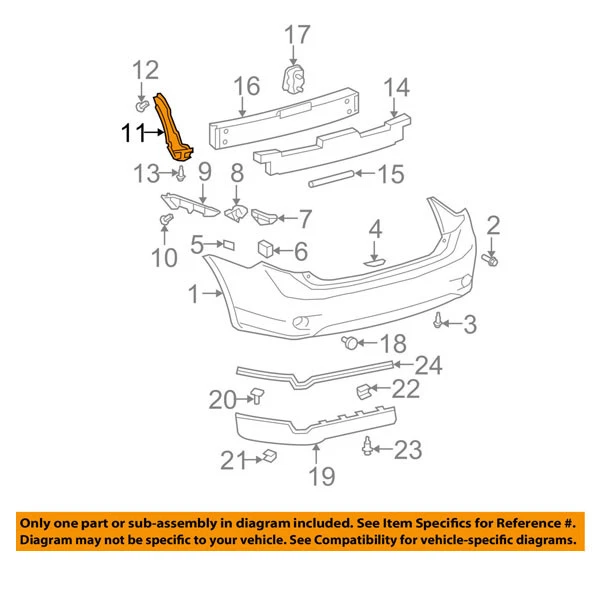 BRAND NEW BUMPER COVER RETAINER MOUNTING BRACE SUPPORT BRACKET! High Quality - Certified - Replacement Aftermarket - Made Of Durable Components This item is a Non-Original part Compatible with the following years and models: 2009 2010 2011 2012 2013 Toyota Corolla (Base, CE, L, LE, S, XLE, XRS) Note: Sedan 4-Door - 1.8 & 2.4 Liter Engine - Made of Plastic Finish/Material: Placement: Rear Left Driver Side