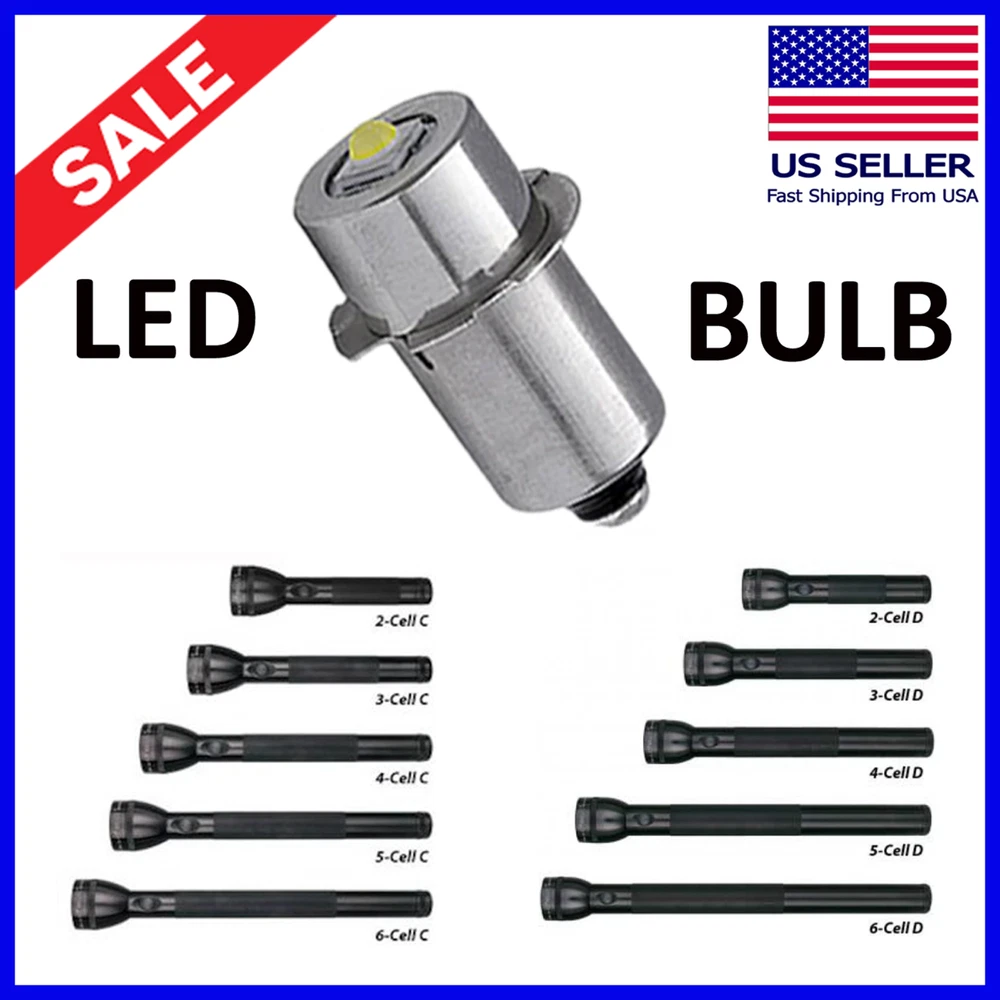 Brand NEW high power LED r eplacement /upgrade bulb for Maglites and other flashlights with 2 - 4 cells/batteries, size C or D. Much brighter than factory bulbs. The very bottom of the bulb is the positive, and the sides are the negative. This is considered regular polarity. Please see pictures and video. Features: - P13.5s bulb base size - Bright white daylight color (5000k) - 50,000 hour bulb lifespan - Drop In replacement - Impact resistant (bulb won't break when the flashlight is dropped) - Much longer battery life than incandescent bulbs NOTE : 5 Watt Ultra high power LED bulb is for 3, 4 cells, size C or D flashlights ONLY. 5 Watt Ultra will not work in 2 cell size lights. Free Shipping: All orders are shipped with tracking via USPS. Listing is for LED replacement/upgrade bulb only. The flashlights shown in the picture are only to demonstrate some examples of the flashlights that these LED bulbs will work in.