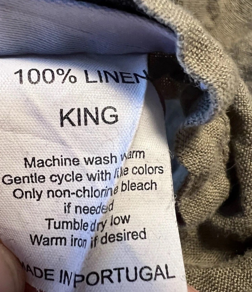 Set of two king-size linen pillowcases from Parachute Home in a muted olive / sage green tone. Made from 100% European linen with Parachute’s signature relaxed, lived-in texture. Details: • Brand: Parachute Home • Size: King • Quantity: 2 pillowcases • Material: 100% Linen • Color: Olive / Sage Green • Made in Portugal • Envelope closure (no zippers) Measurements (approx., laid flat): • Width: ~20” • Length: ~36” (King size; please reference measurements) Condition Notes: • Pre-owned, good condition • Linen shows natural wrinkling and texture • No holes or tears noted • Light signs of normal use consistent with linen • Freshly laundered prior to listing Please review all photos for color tone and texture — linen naturally varies.