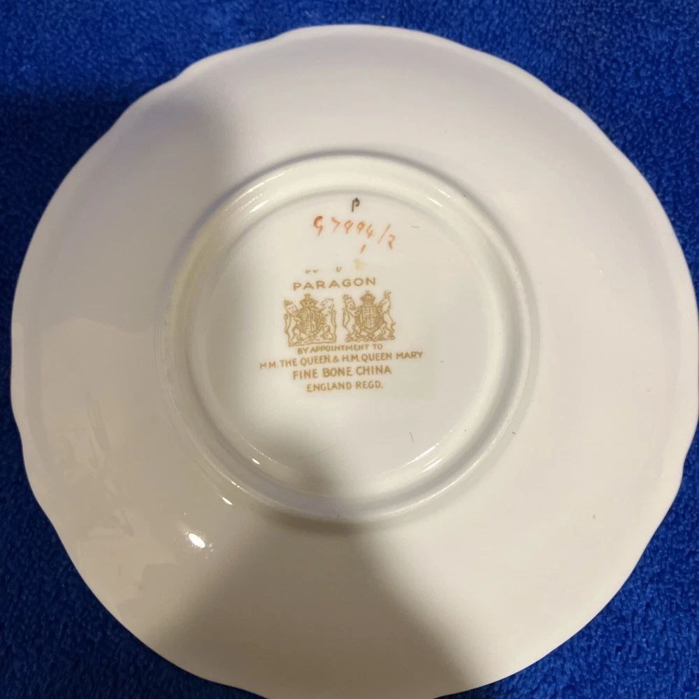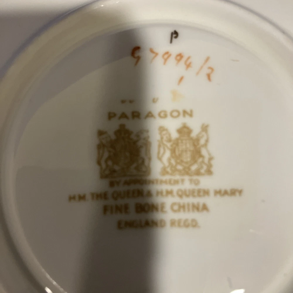 Paragon HM The Queen and HM Queen Mary tea cup and saucer. Saucer numbered G7994/2. No chips no cracks no crazing. Items are in very fine condition.