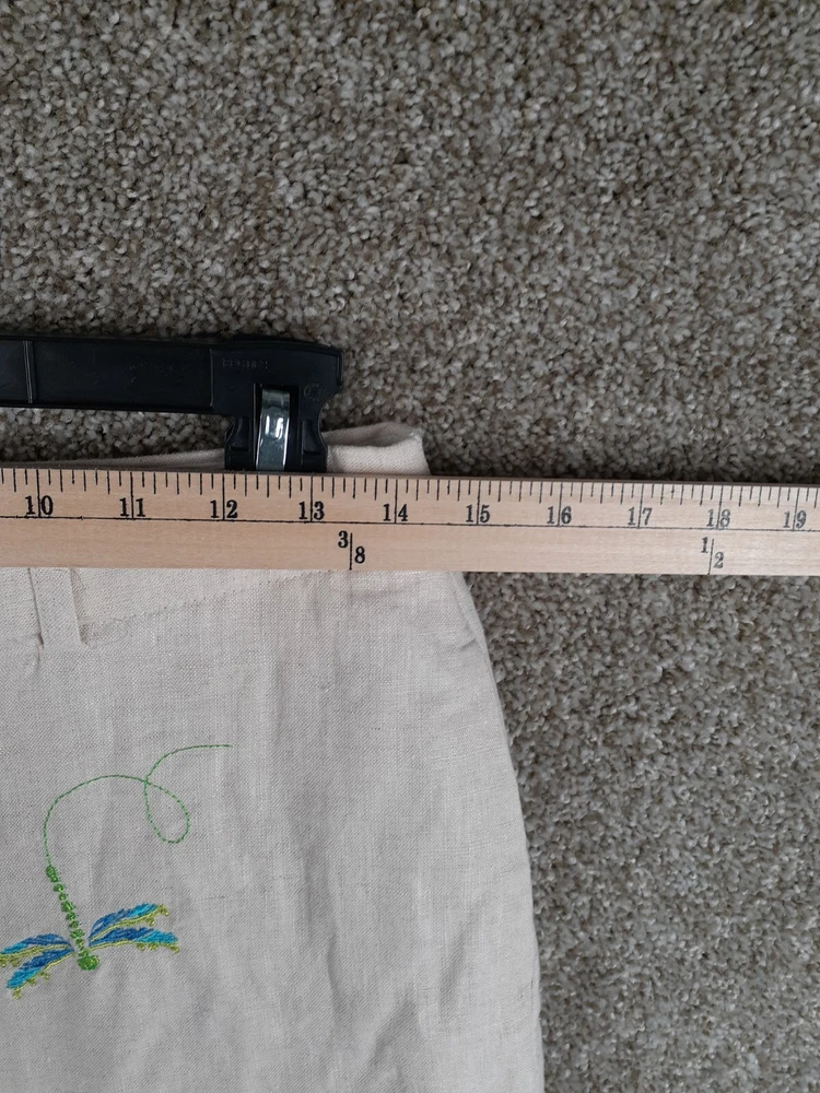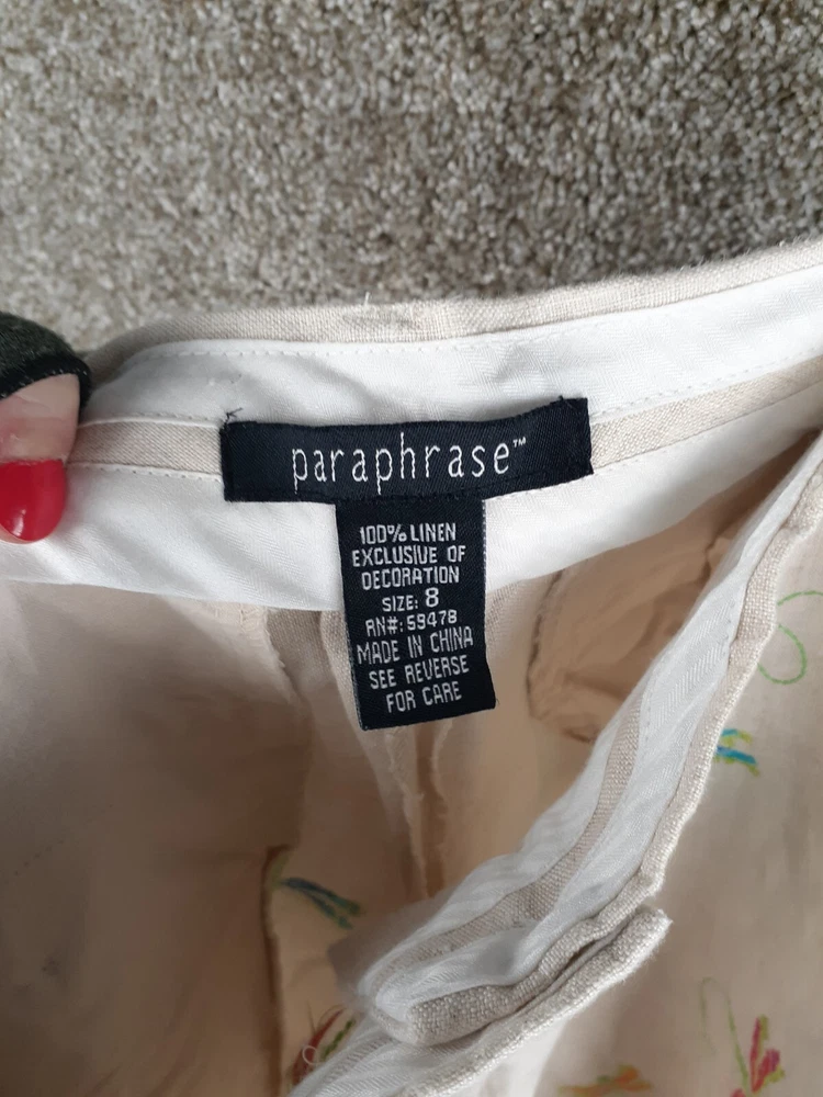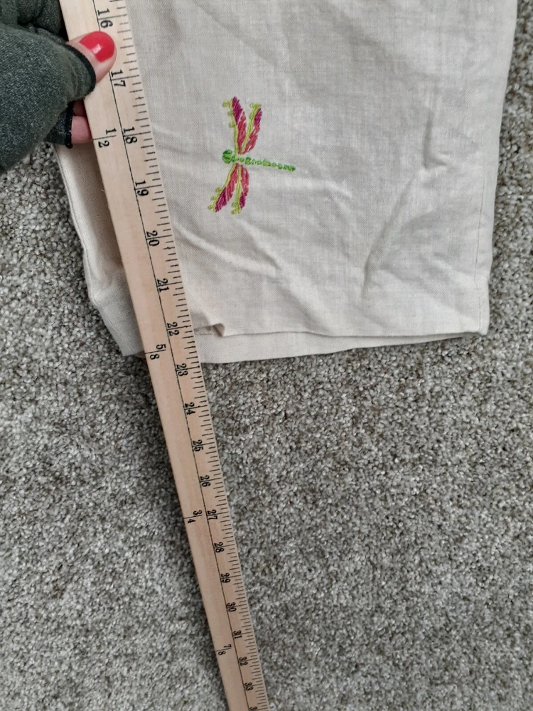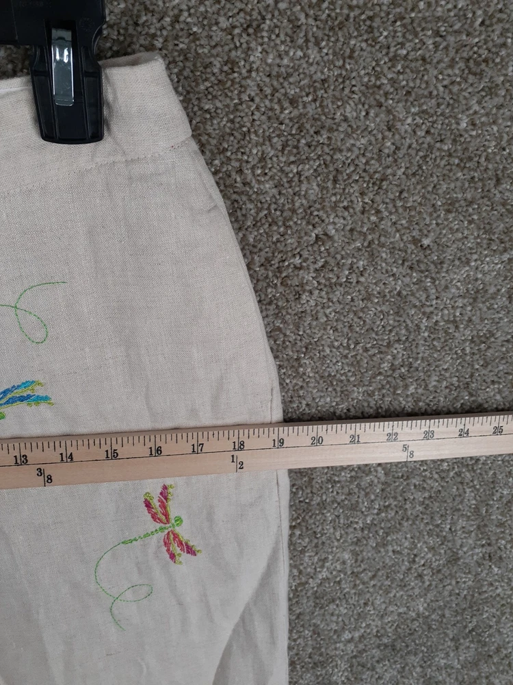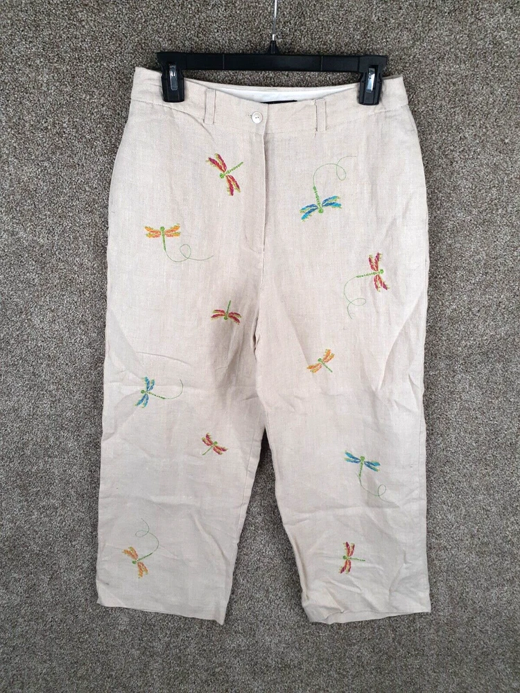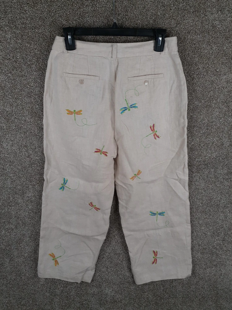 For Sale: A pair of Paraphrase Crop Linen Pant Womens 8 Beige Dragonfly Embroidered Pockets Boho Art Size: Women's 8 Measurements: Refer to photos above. In good gently used condition with no major flaws such as rips, tears, or stains. We ship items daily, so plan to receive your item(s) quickly! We also combine & discount shipping for orders with multiple items. From a smoke-free home. We accept domestic 30-day returns. We provide a variety of measurements on all items. Measurements are approximate and as close to accurate as possible but certain fabrics and styles can have a slight variation. Please be sure to check all measurements on used garments as they have been laundered and might vary from other items in the same style. Please message me with any question you may have, I answer most questions very quickly!