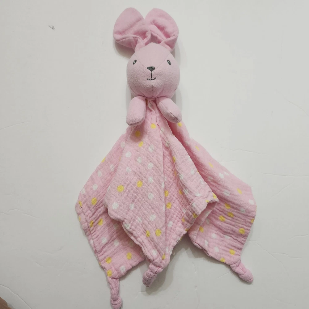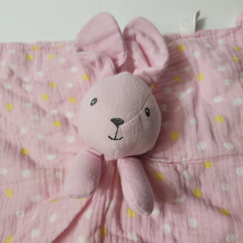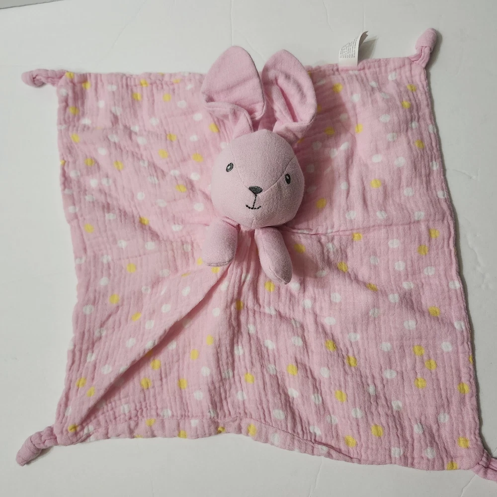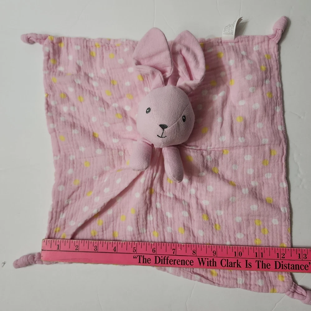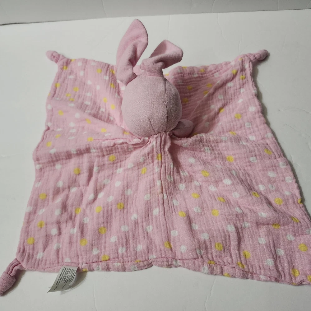 Parents Choice Pink Bunny Rabbit Polka Dot Muslin Security Blanket Lovey Rattle
