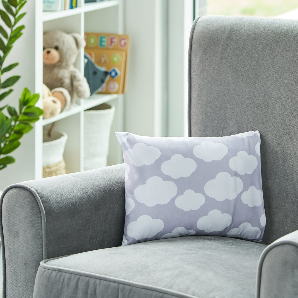 The Parent's Choice Toddler Pillow with Removable Pillowcase features a cloud print design. The pillow cover is sized at 10*13 inches and comes in a white color. This product is ideal for toddlers and offers a comfortable sleeping experience.